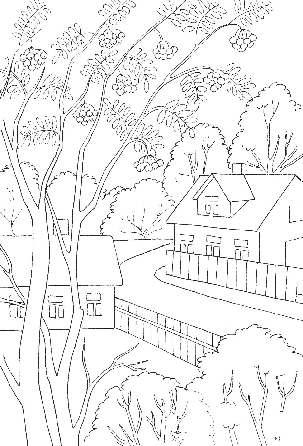 Осенний пейзаж раскраска