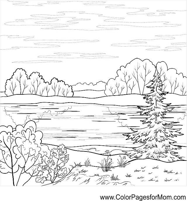 Раскраска Речной пейзаж