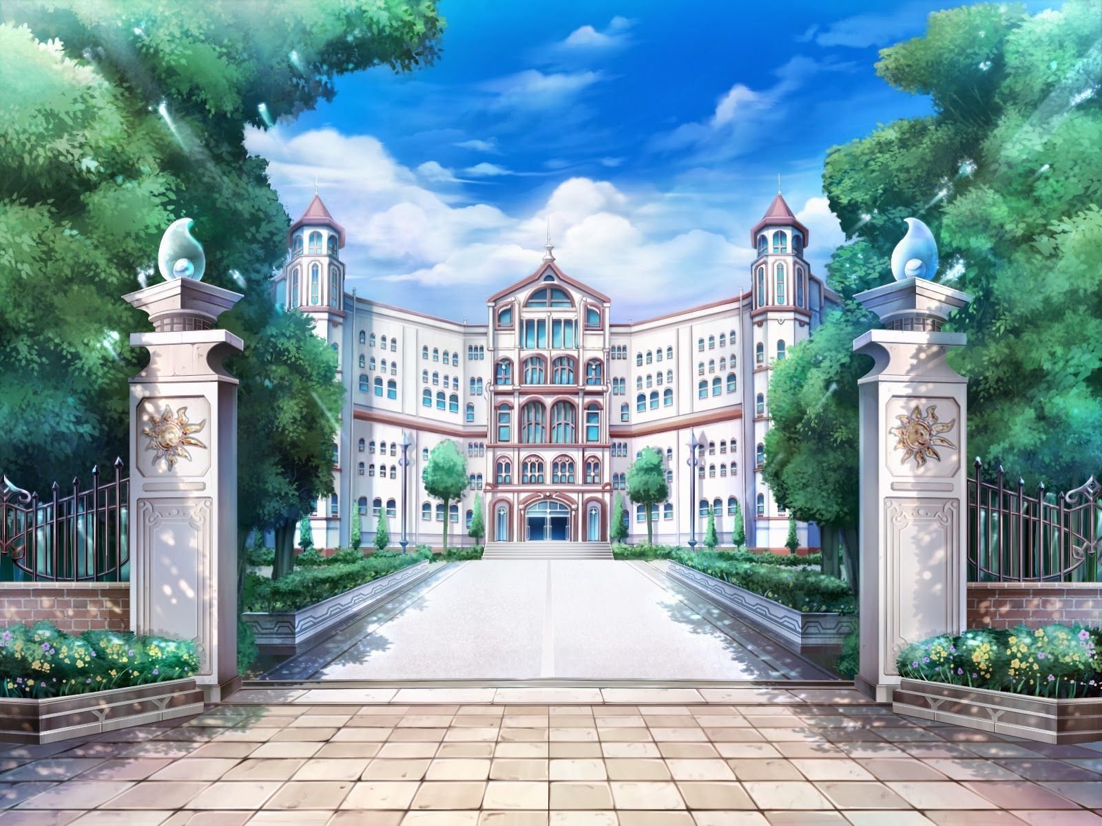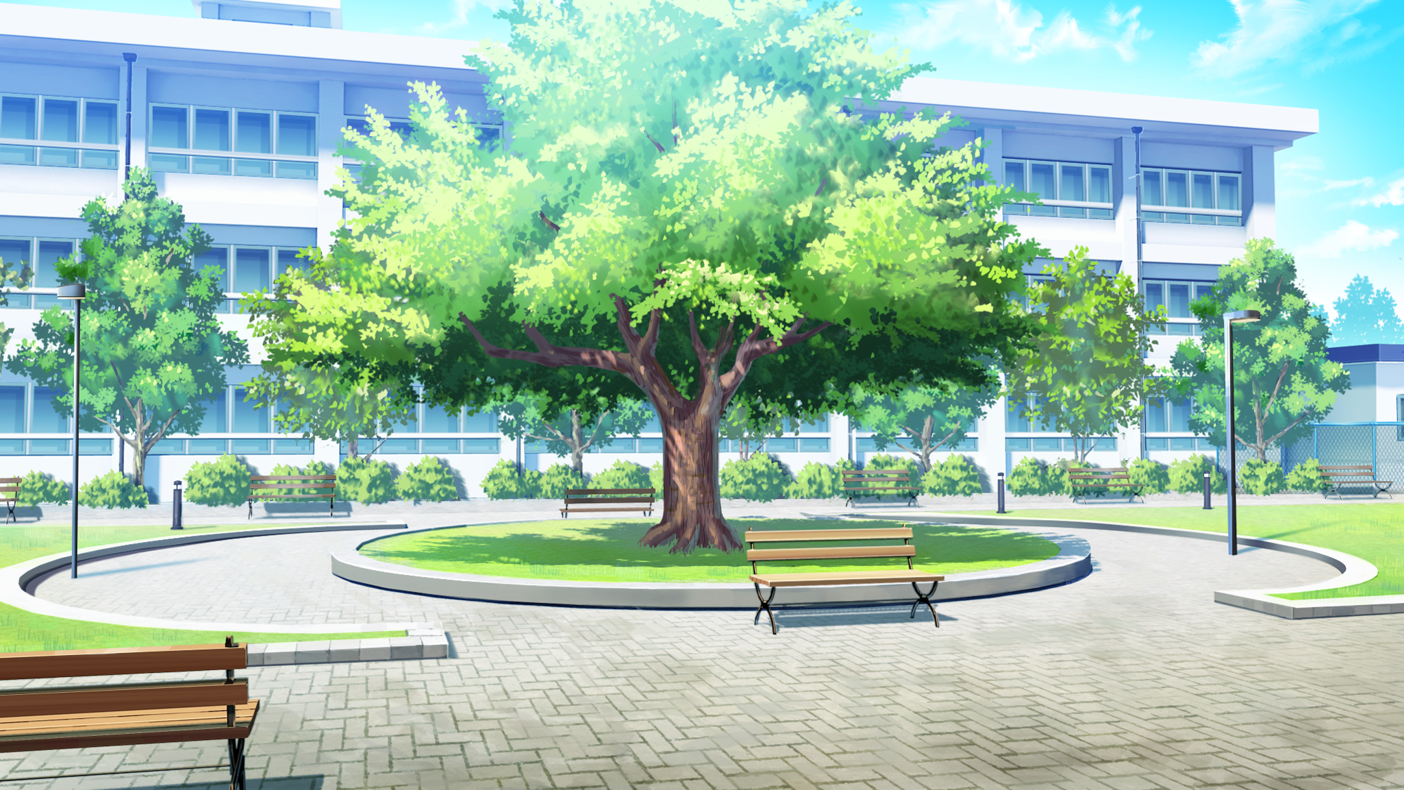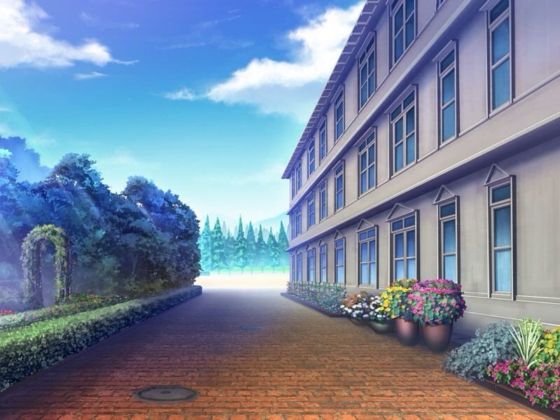 Двор школы аниме