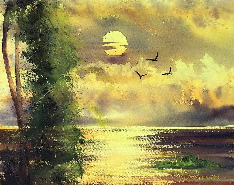 Пейзаж гуашью