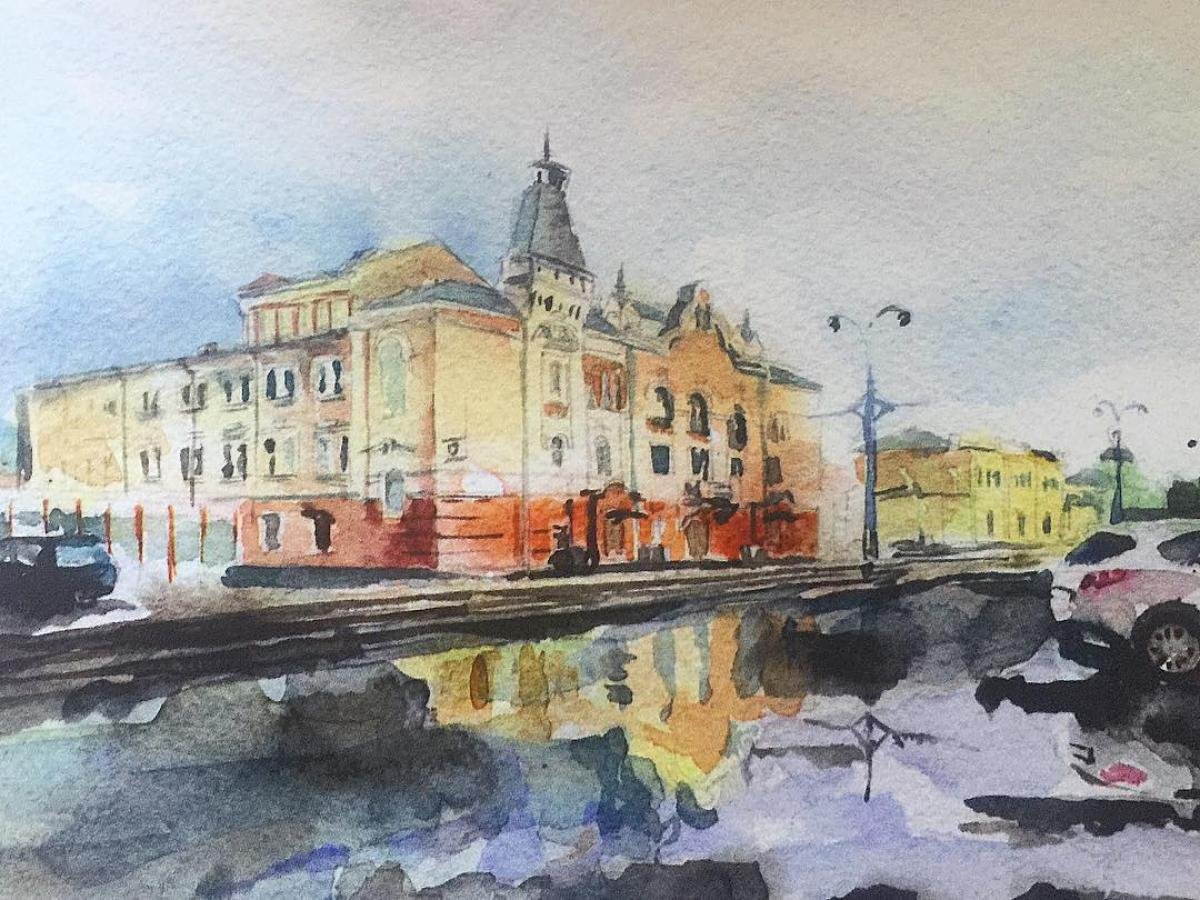 Городской пейзаж Барнаул акварель