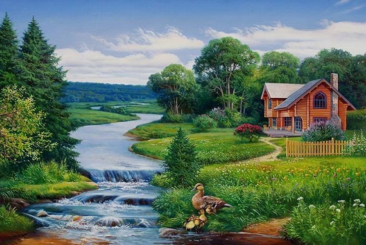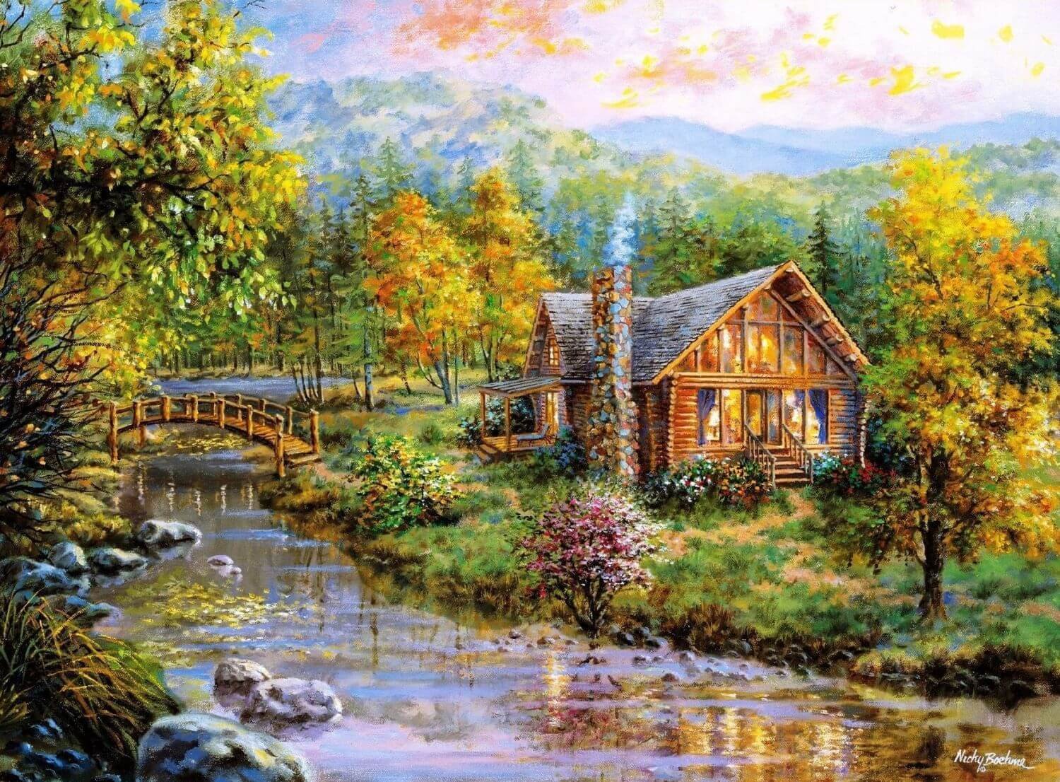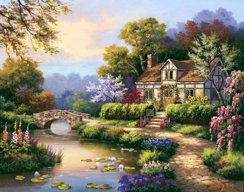 Томас Кинкейд картины дом речушка мостик