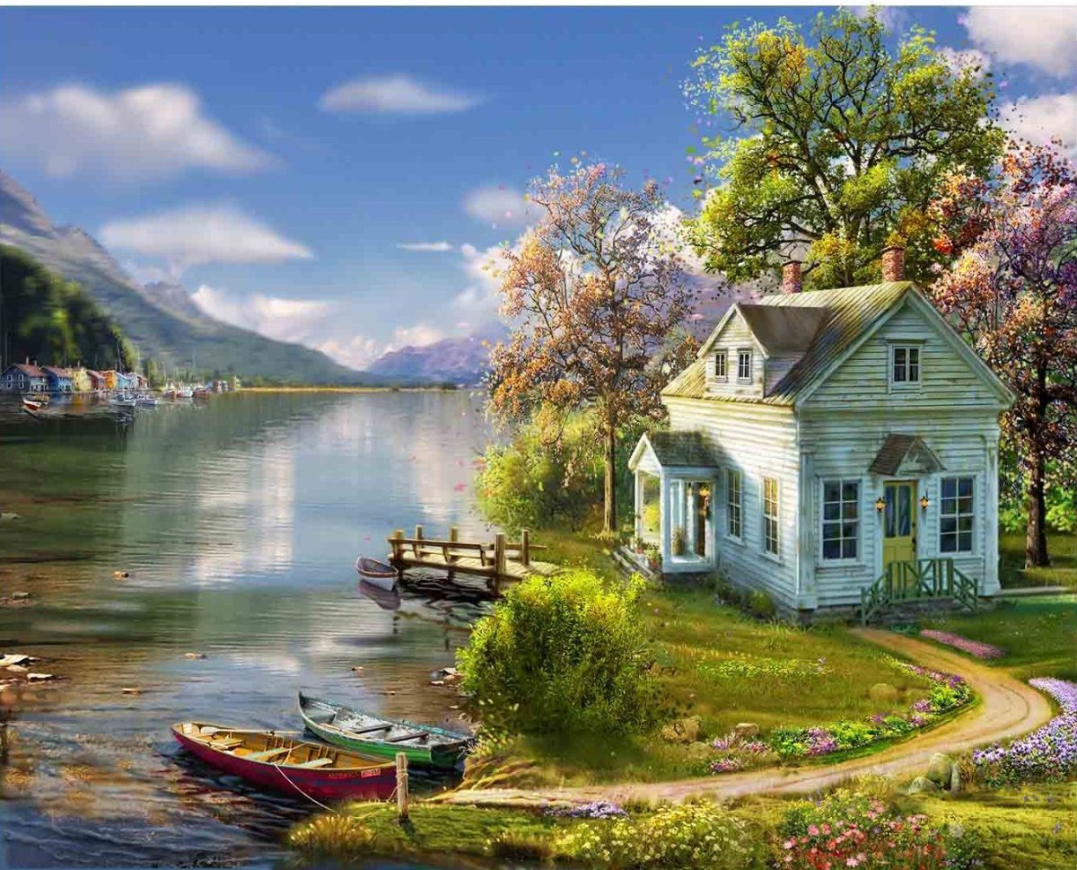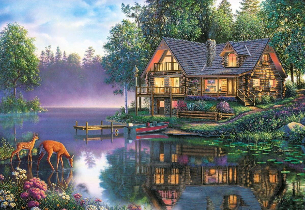 Томас Кинкейд картина дом у озера