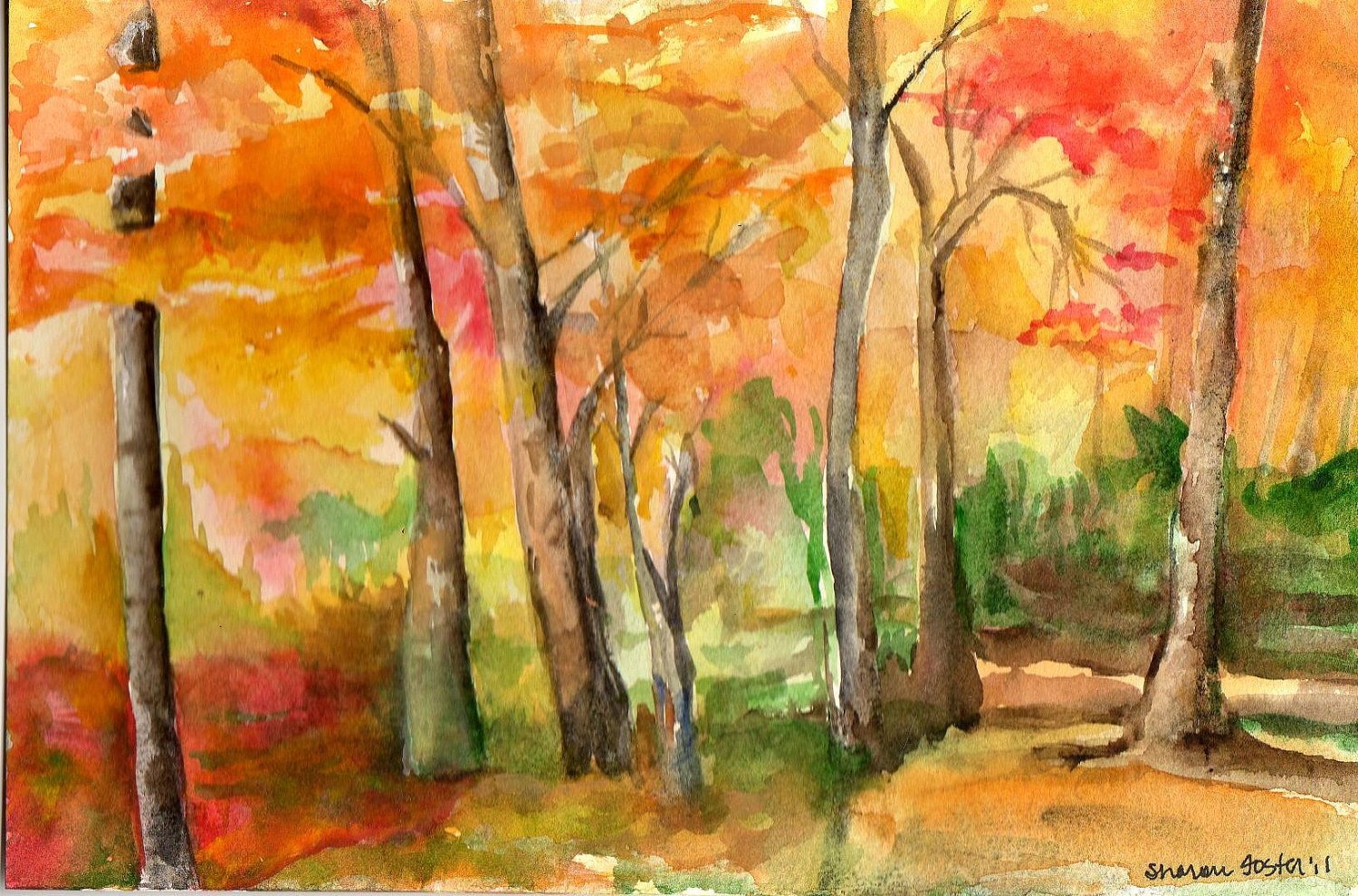 Рисование осеннего пейзажа акварелью