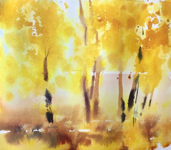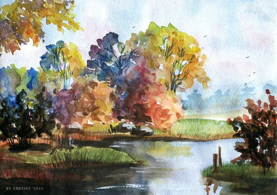 Осенний пейзаж акварелью для начинающих