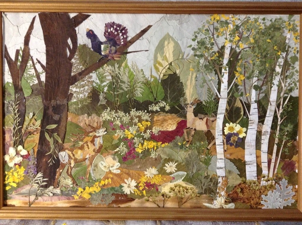 Картины из сухих листьев ошибана