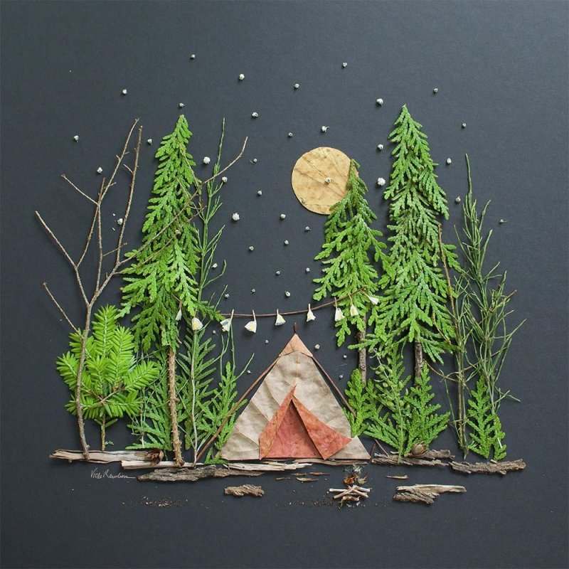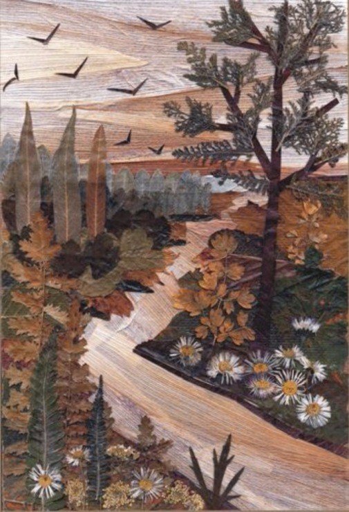 Флористика пейзаж из листьев