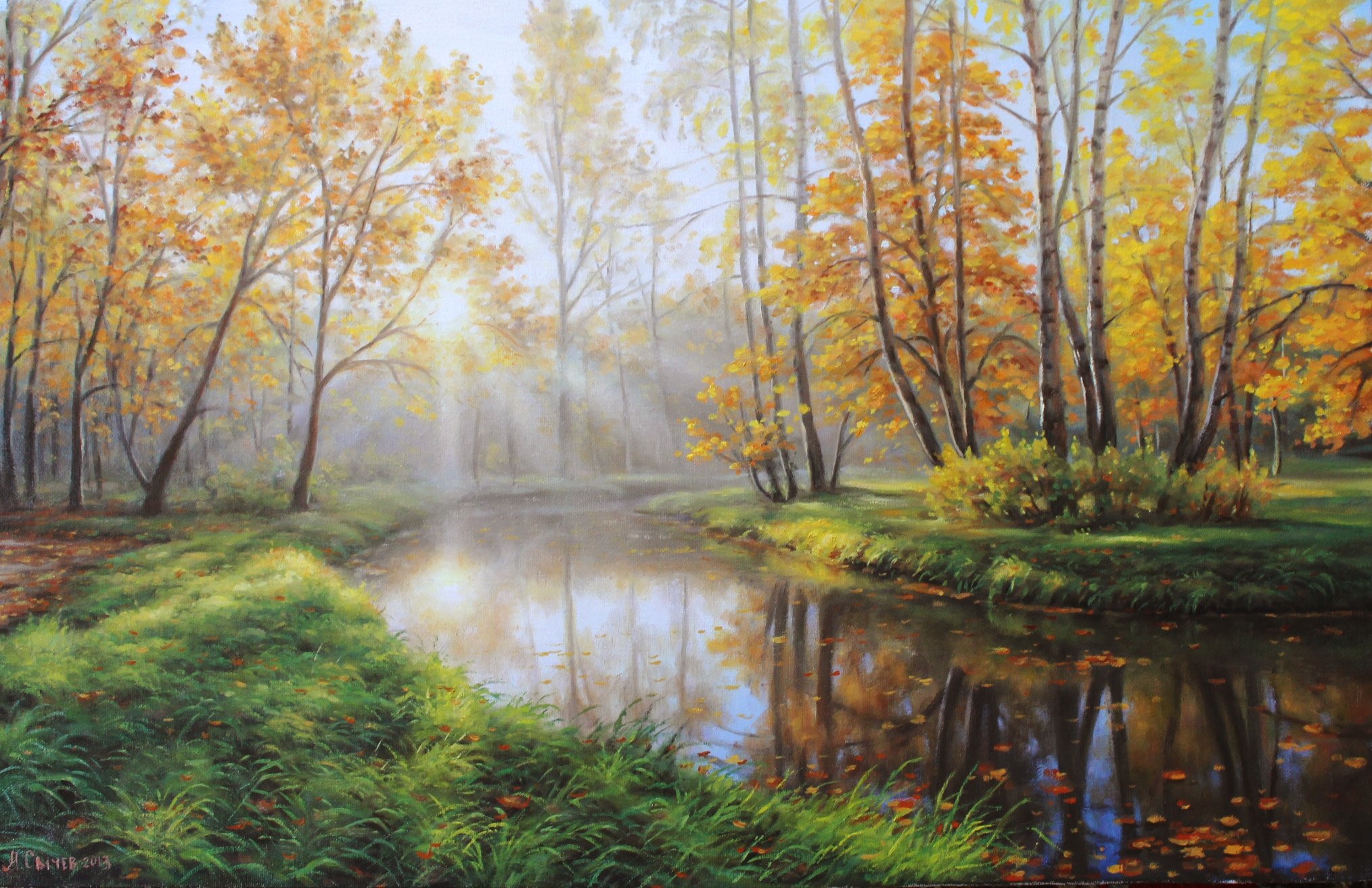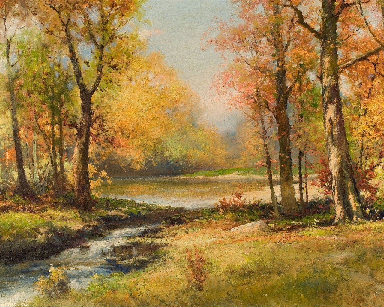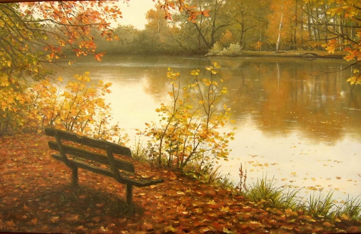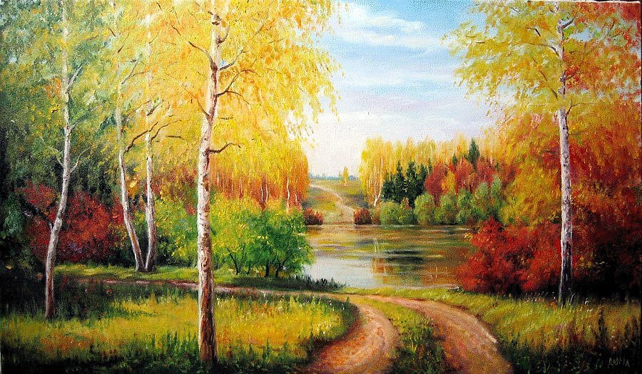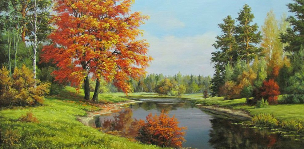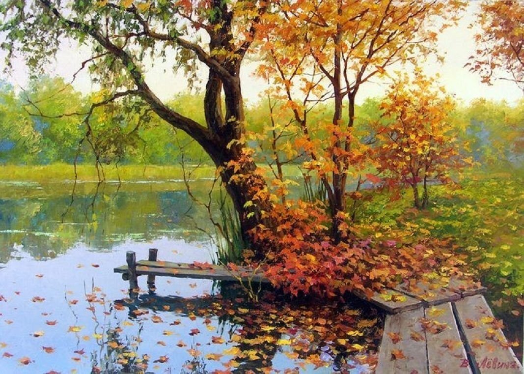 Картины маслом пейзажи осень у воды