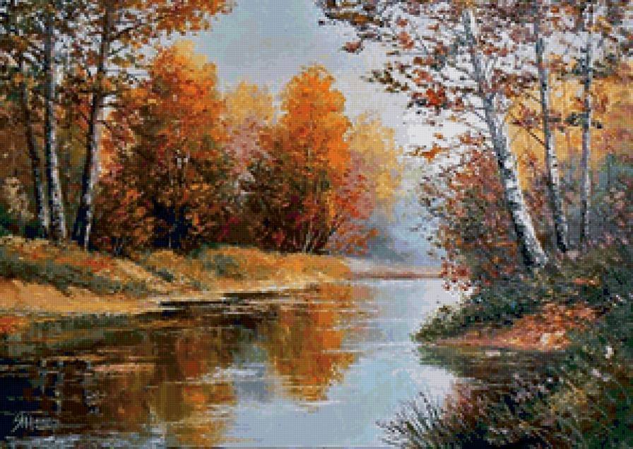 Вышивка крестом осень река