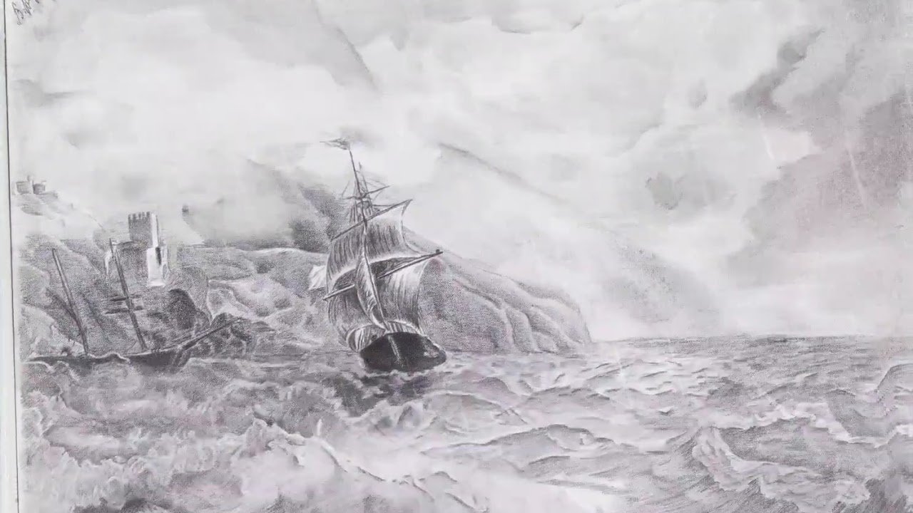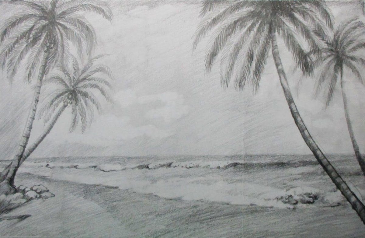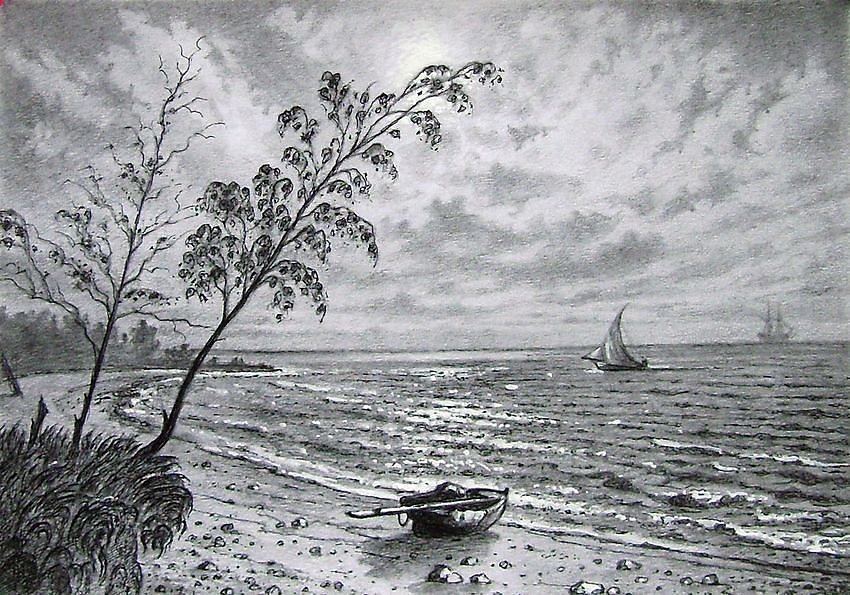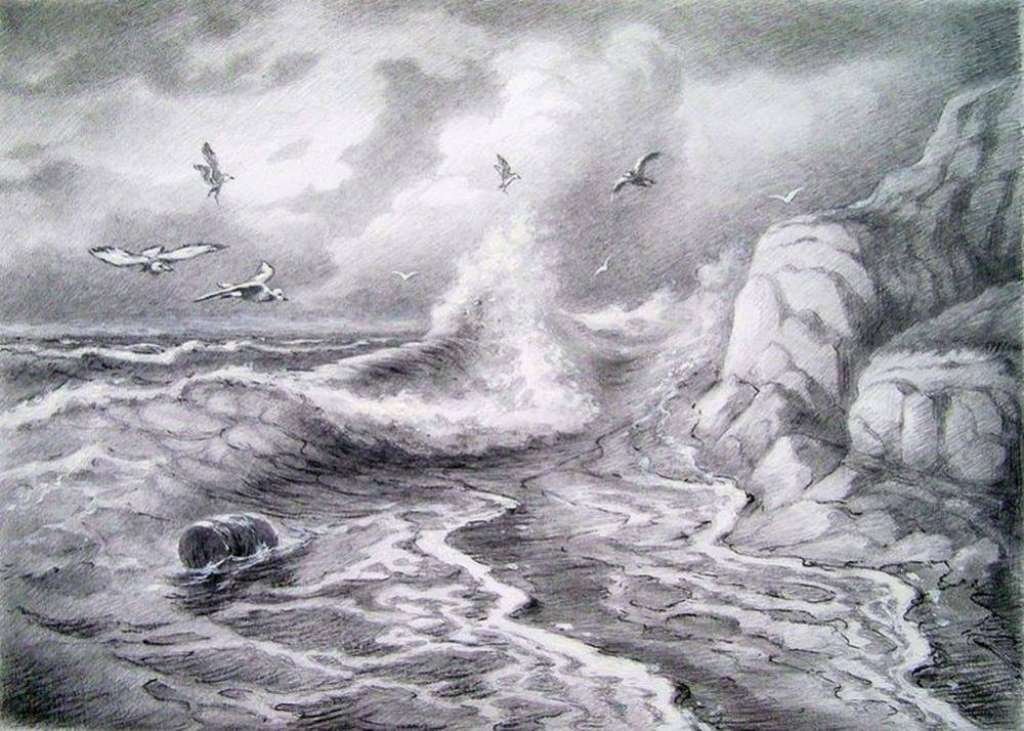 Морской пейзаж карандашом для начинающих