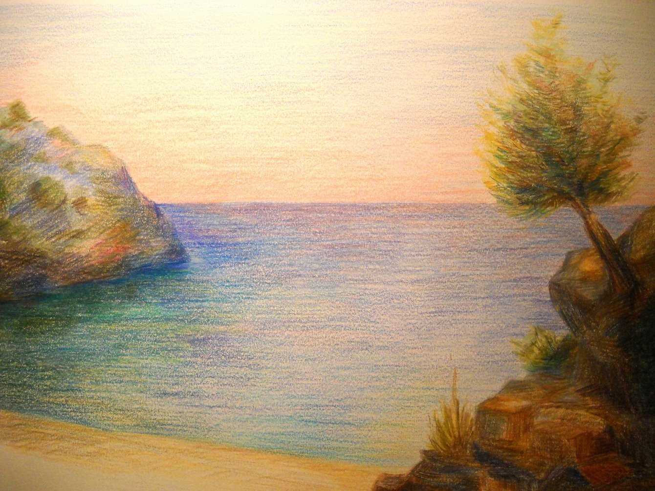 Морской пейзаж цветными карандашами
