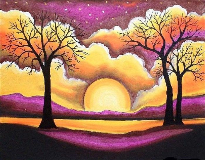 Декоративный пейзаж гуашью легко (50 фото)