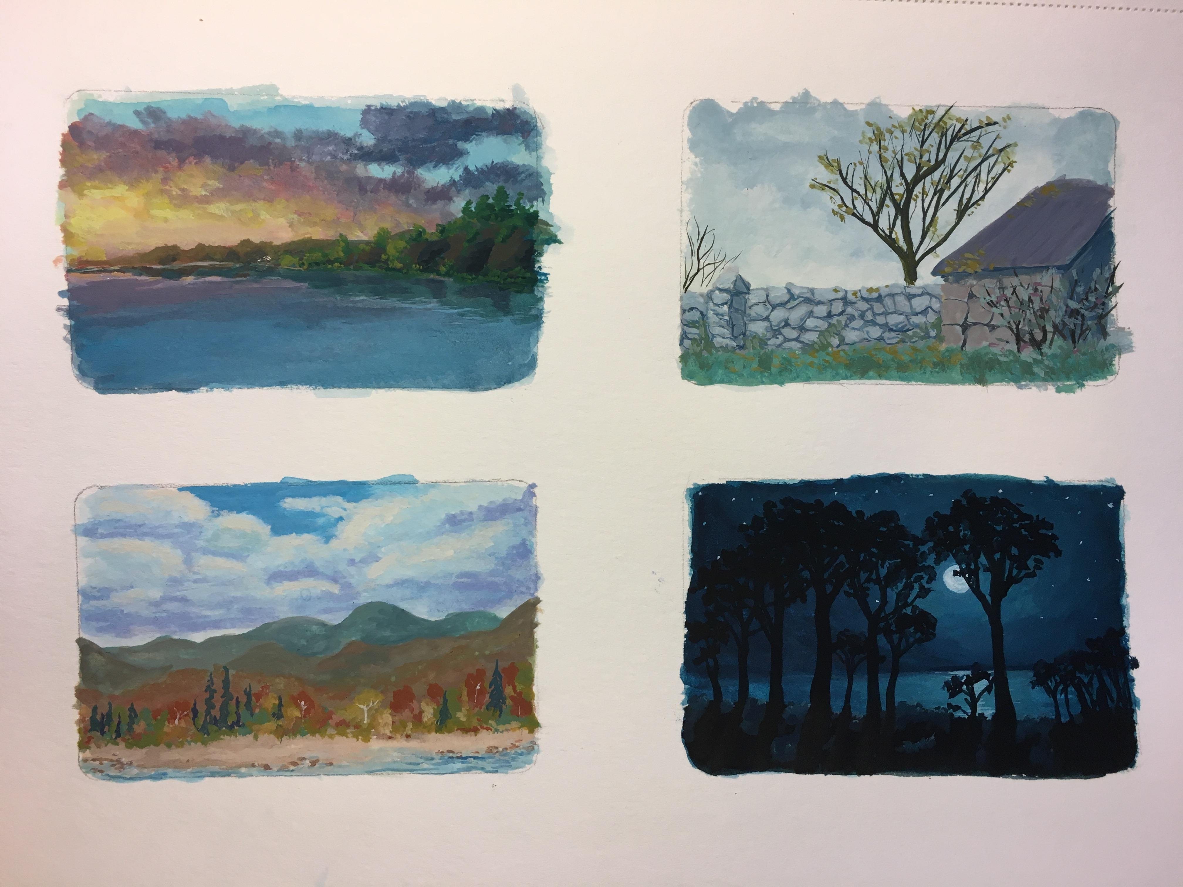 Пейзаж гуашью