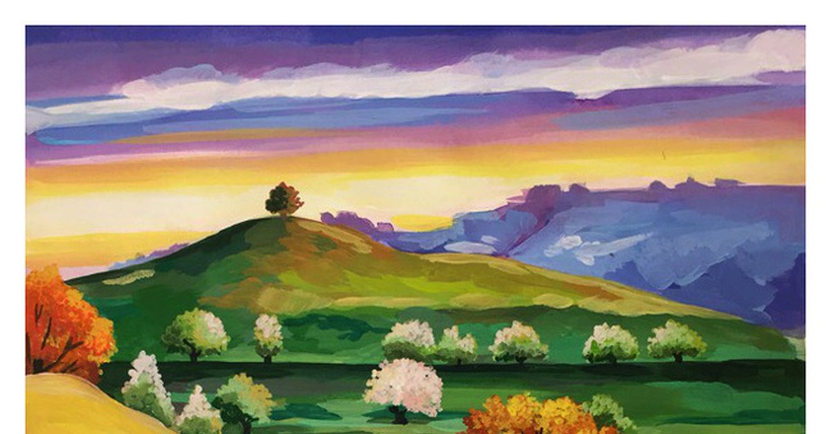 Декоративный пейзаж гуашью