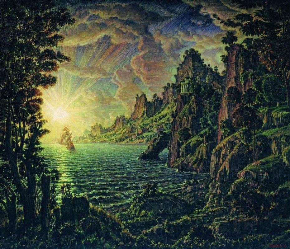 Константин Федорович Богаевский - известный русский художник, чье творчество в основном связано с живописью пейзажей Крыма. Его картины отличаются уникальной способностью передать красоту и магию этого прекрасного полуострова. В каждой работе Богаевского можно ощутить его любовь к природе, чувство гармонии и умиротворения. Он мастерски использует кисть и цвета, чтобы воссоздать реалистические и одновременно поэтичные картины Крыма. Благодаря его работам, зритель может почувствовать себя путешественником, погруженным в прекрасный и волшебный мир крымских пейзажей.
