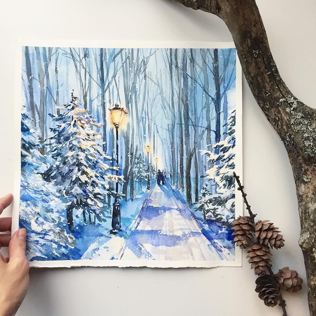 Зимний пейзаж рисунок акрилом