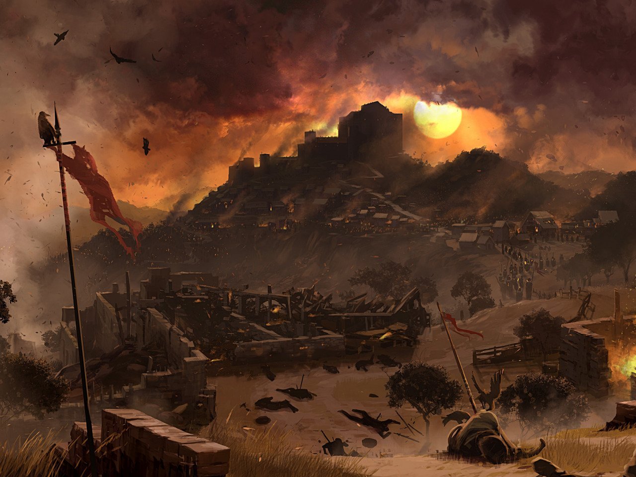 Акварель пейзаж война