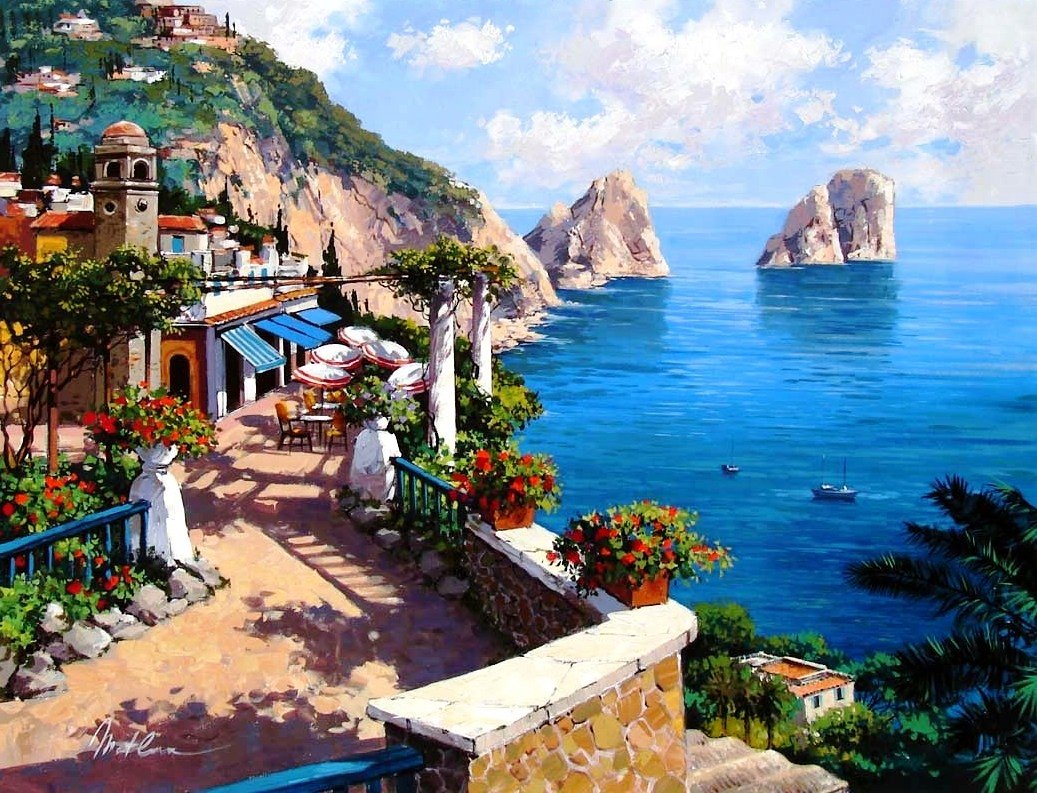 Живопись Средиземноморский пейзаж Игорь Сахаров лодка