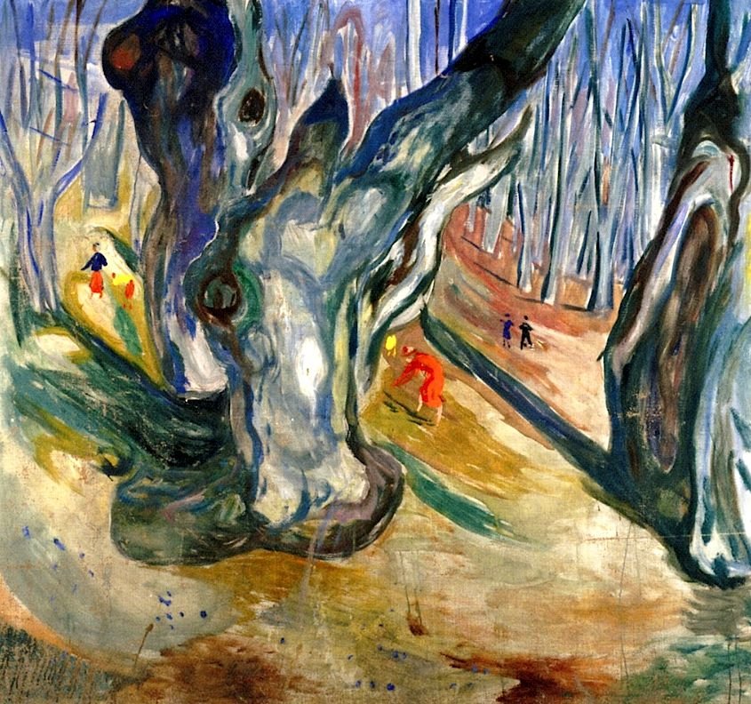 Эдвард Мунк весенний пейзаж с вязами