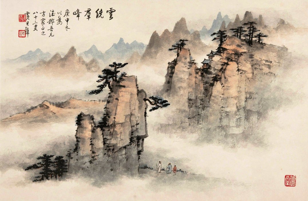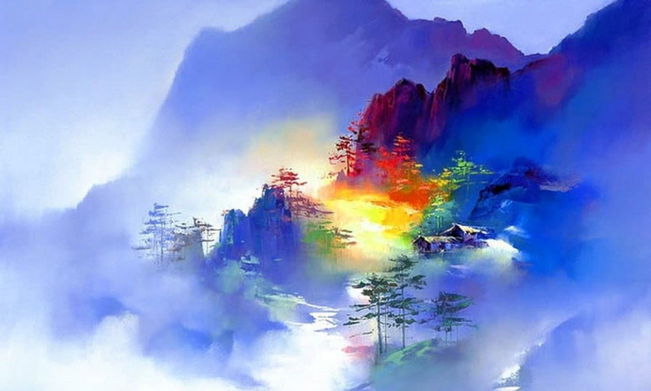 Домик в горах живопись