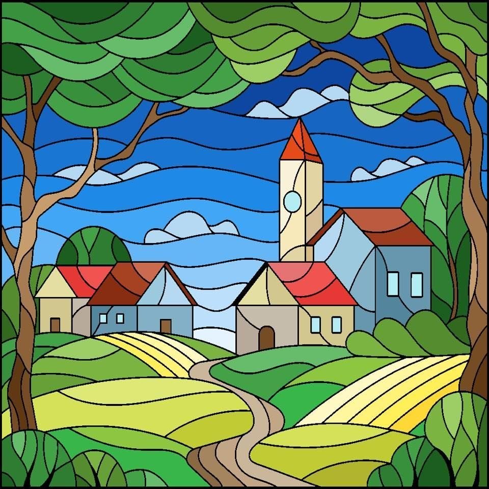 Витраж Тиффани старый город