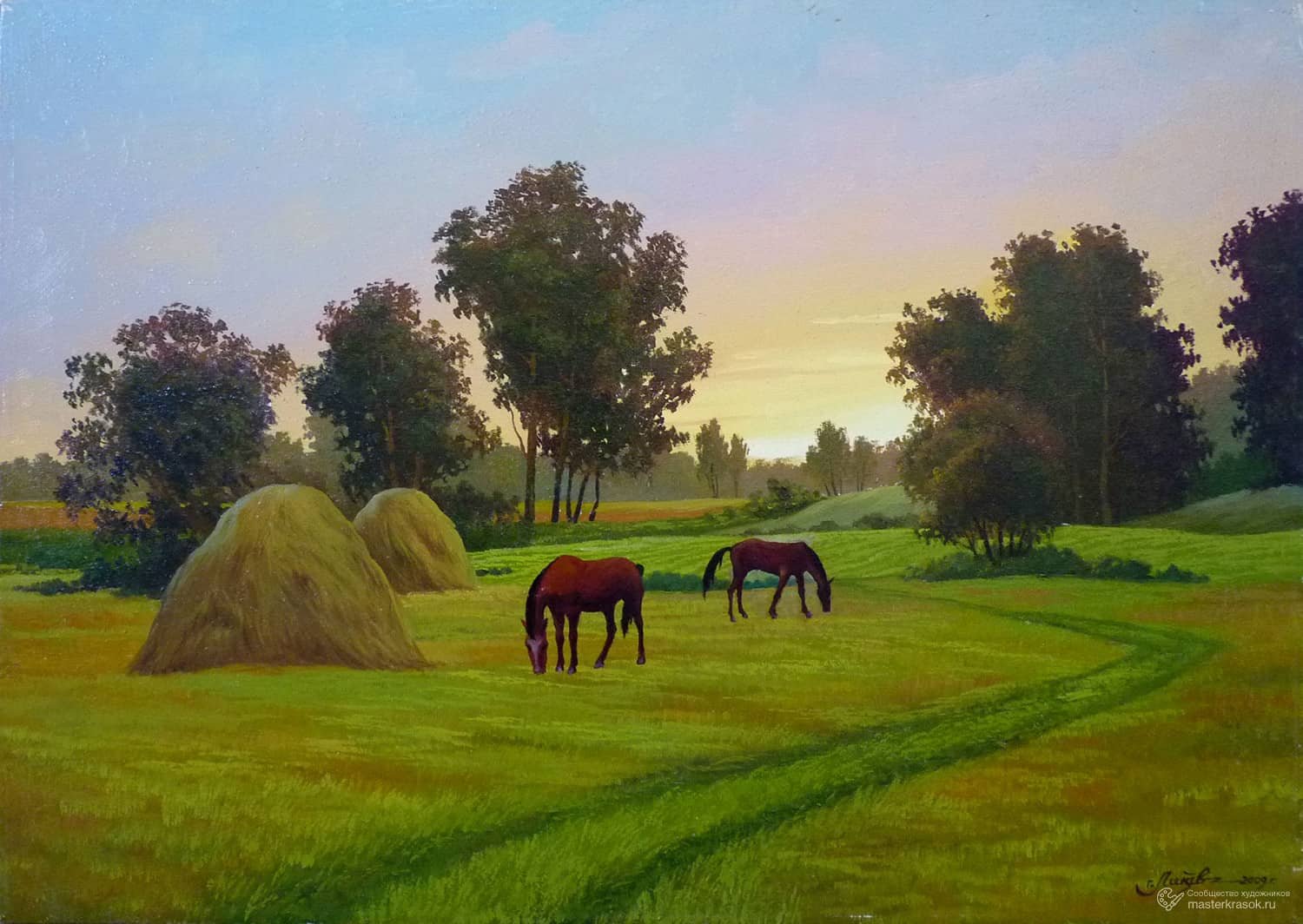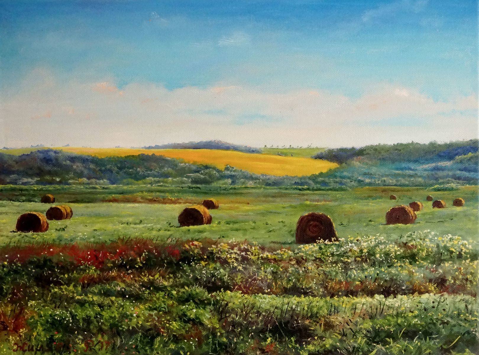 Живопись пейзажи поле стога