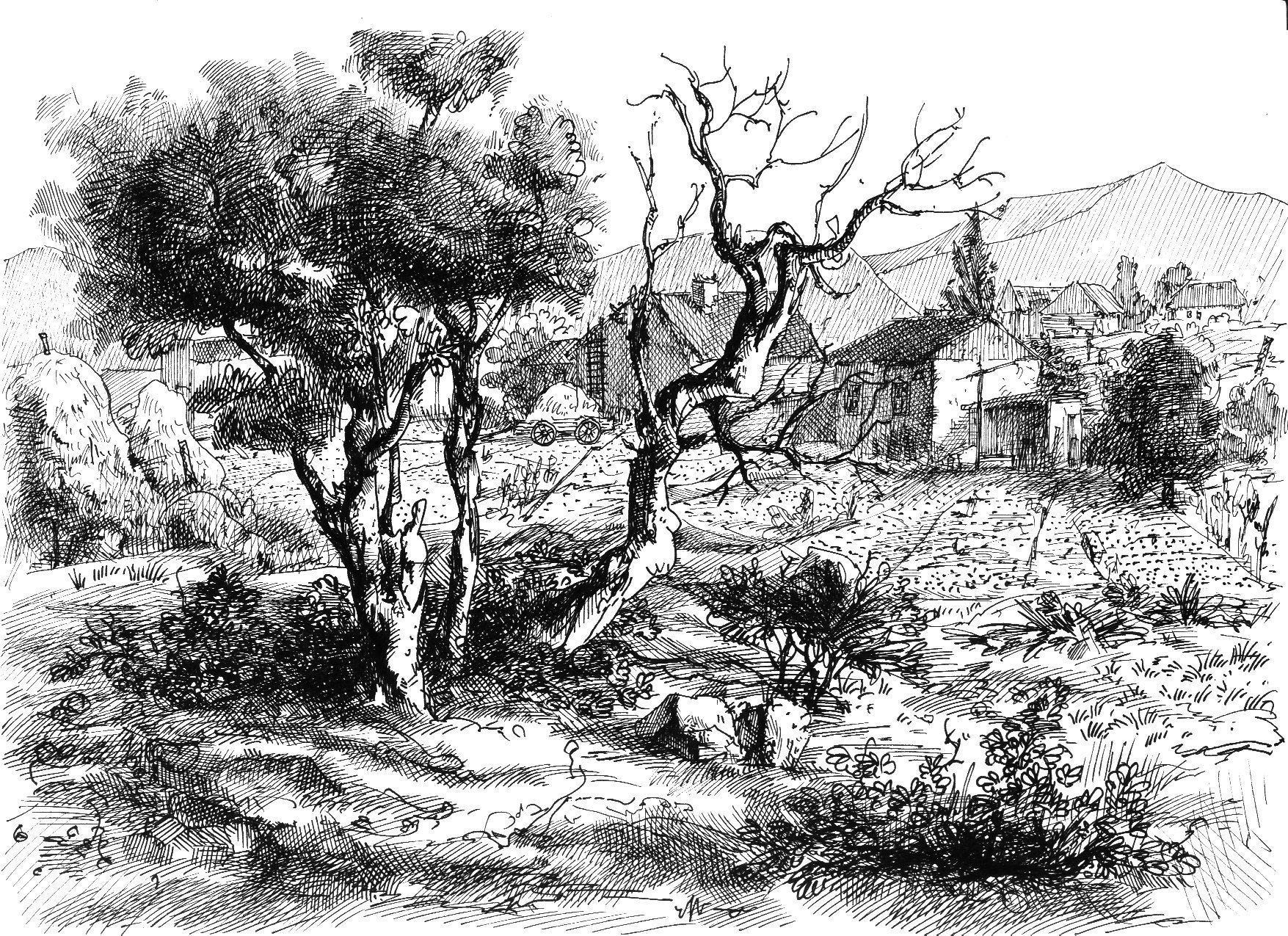 Пейзаж черной ручкой