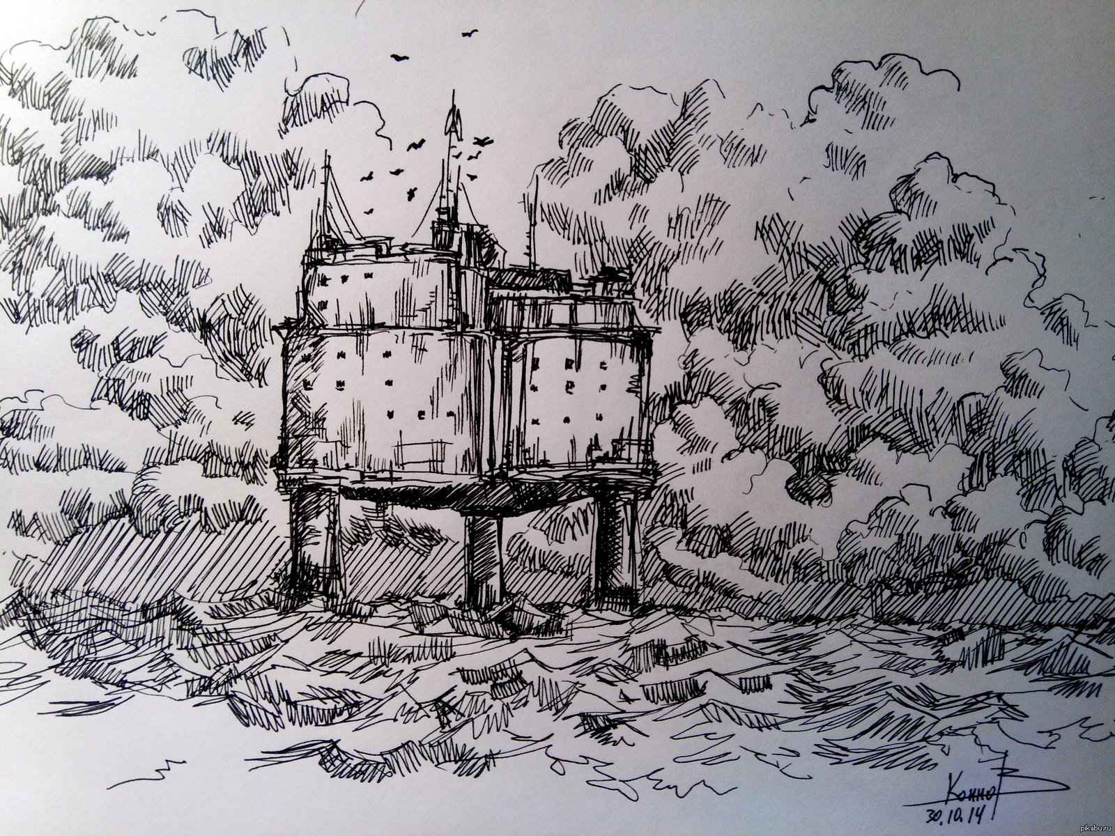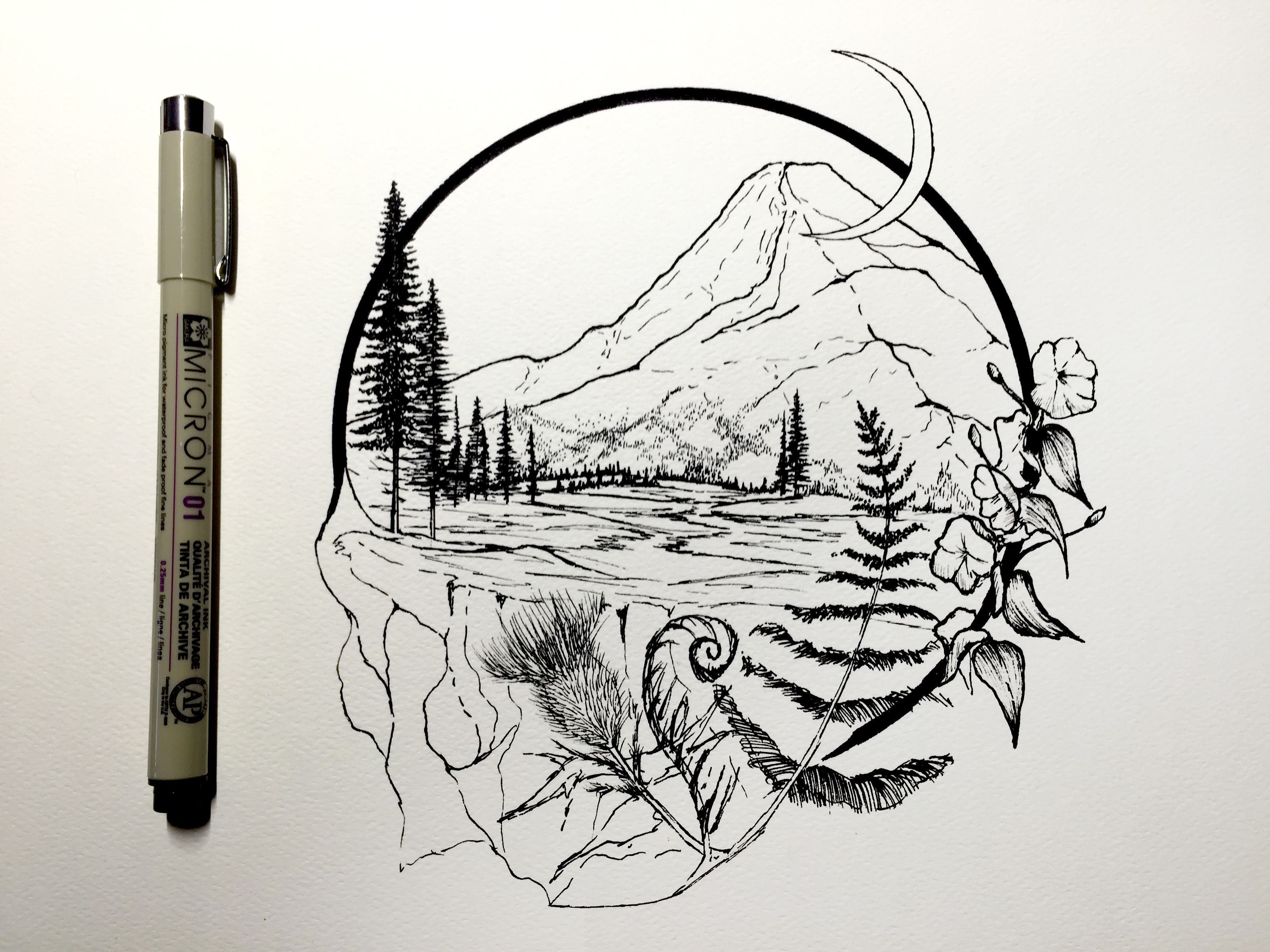 Рисунки линером пейзаж