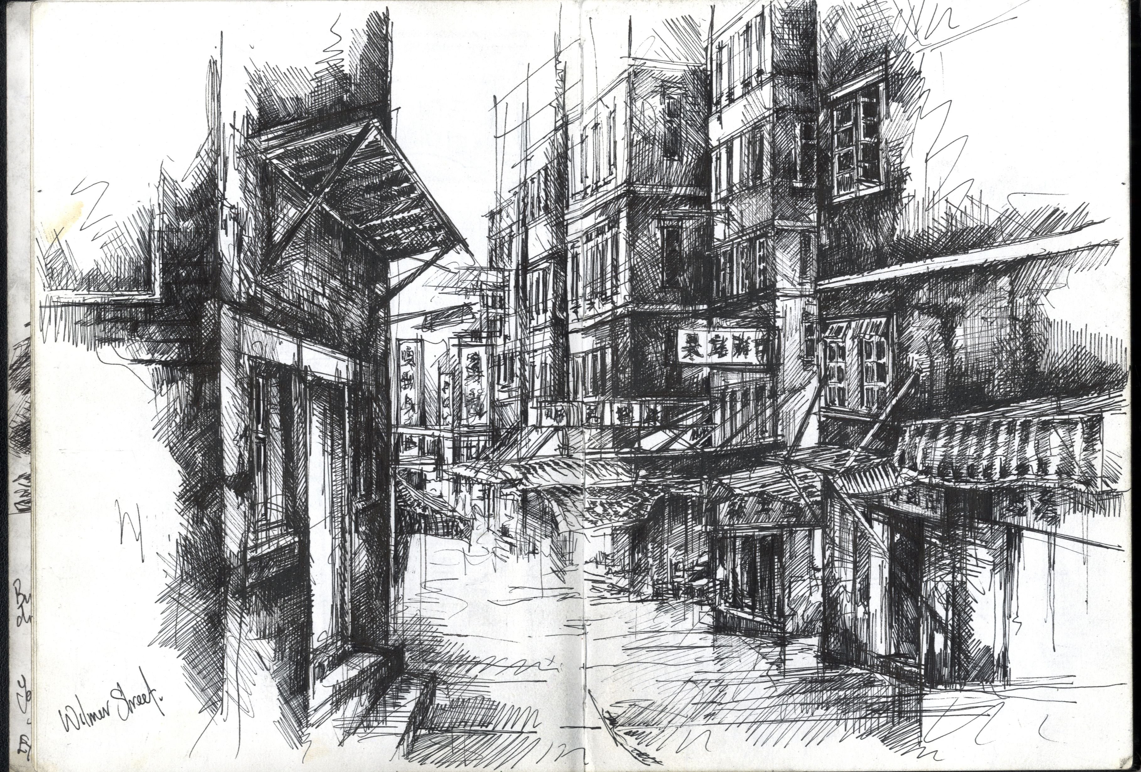 Архитектурный пейзаж гелевой ручкой