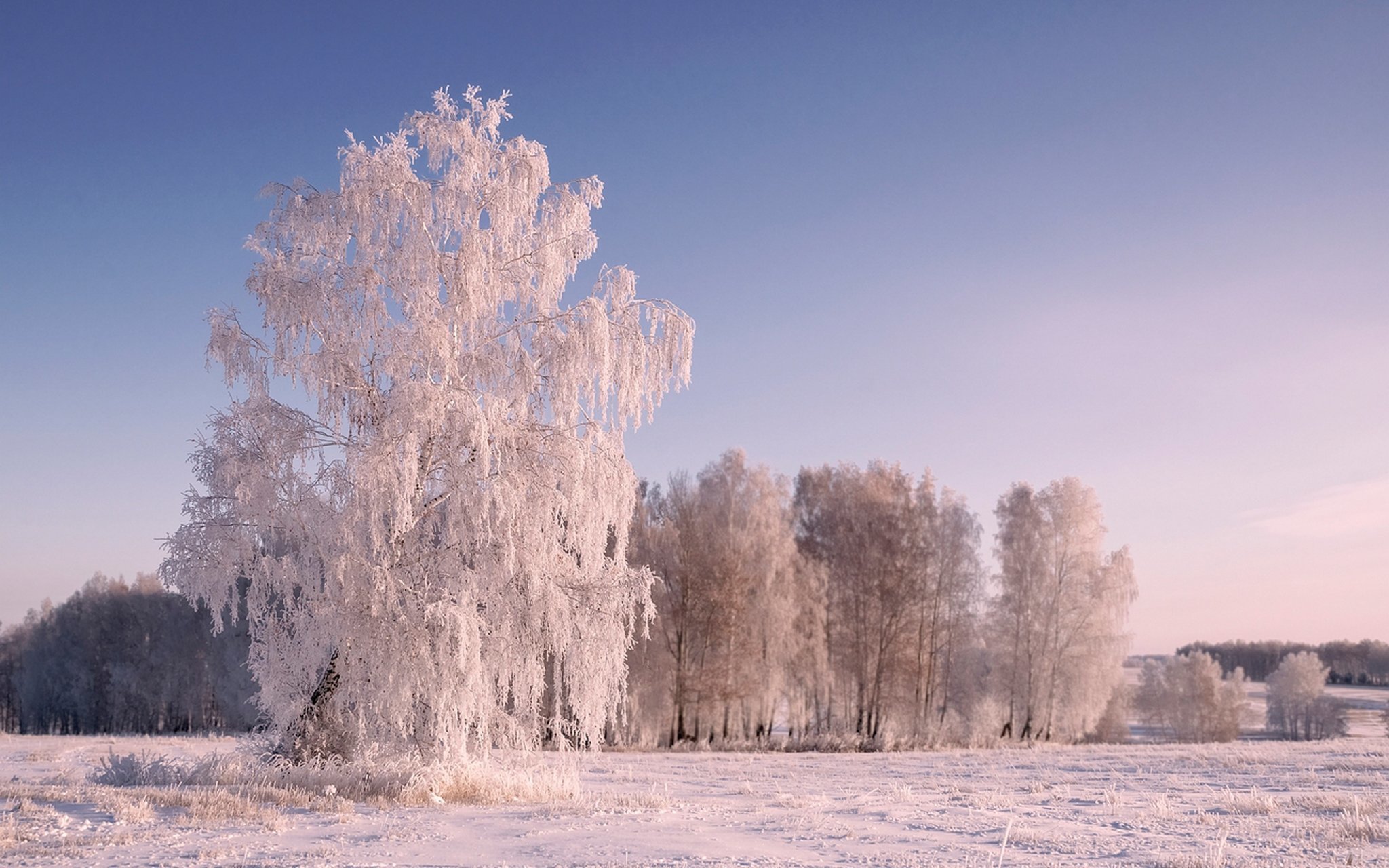 Снежные деревья в поле
