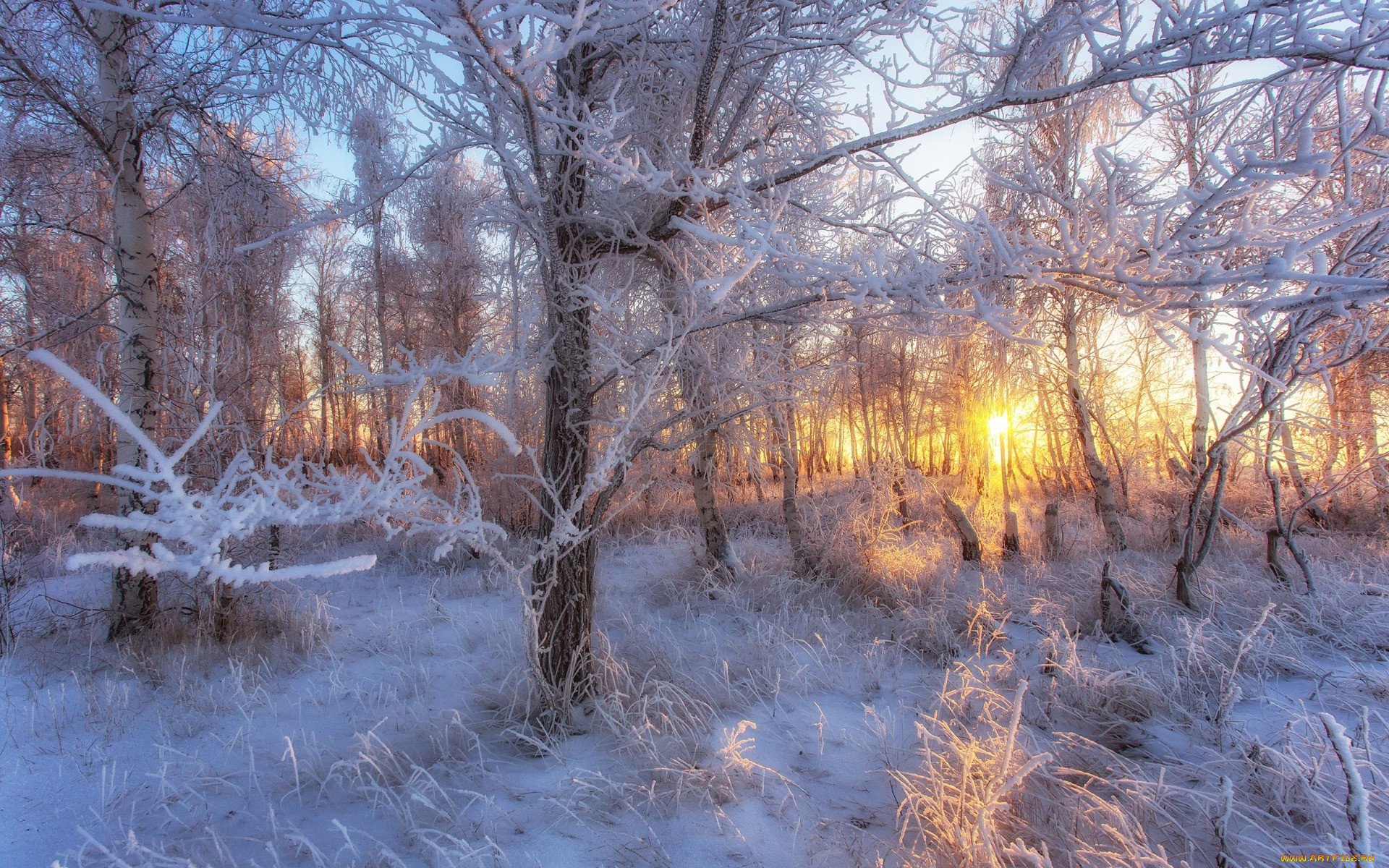 Зима деревья в снегу
