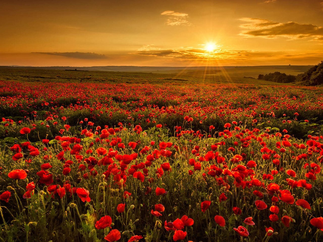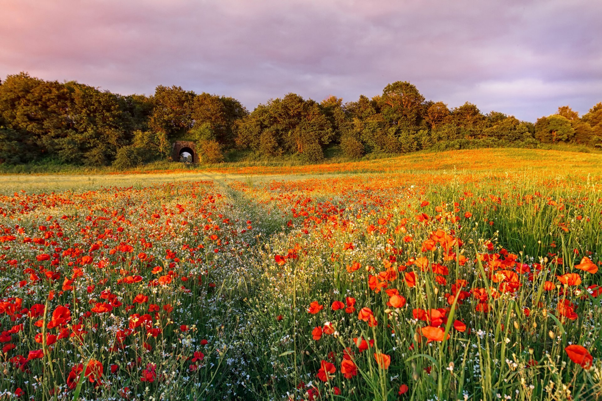 Маковое поле на рассвете