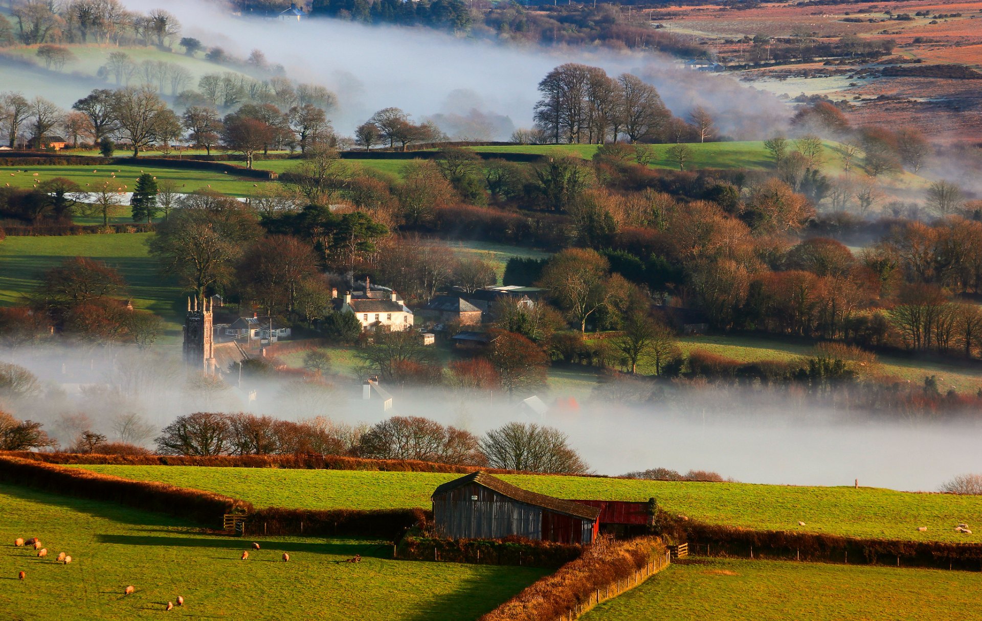 Долина пеуси, Уилтшир, туман, Англия, графство, осень.
