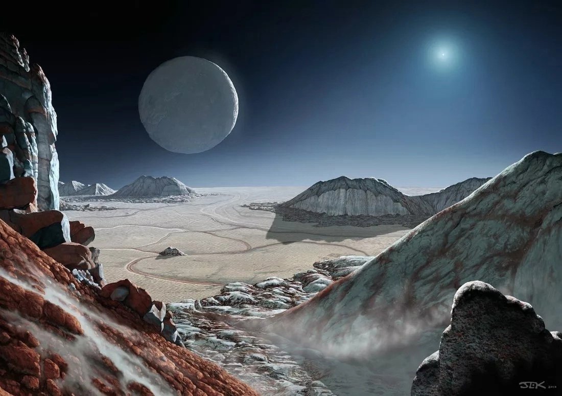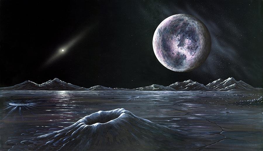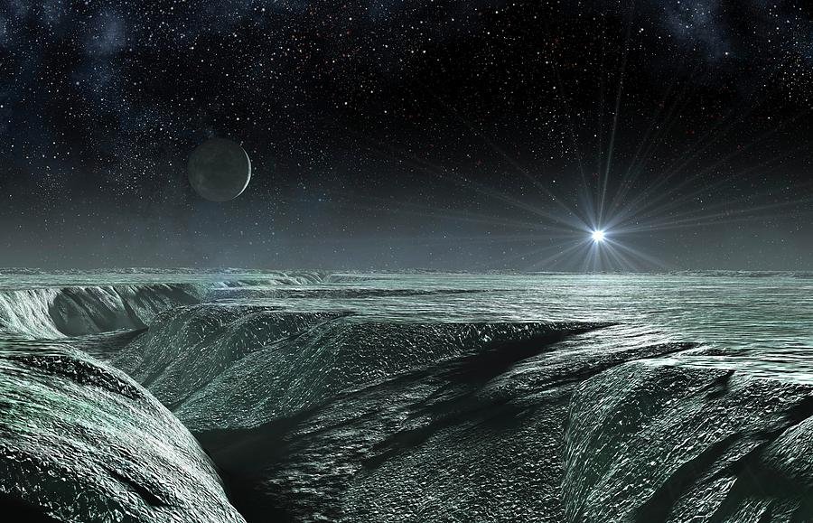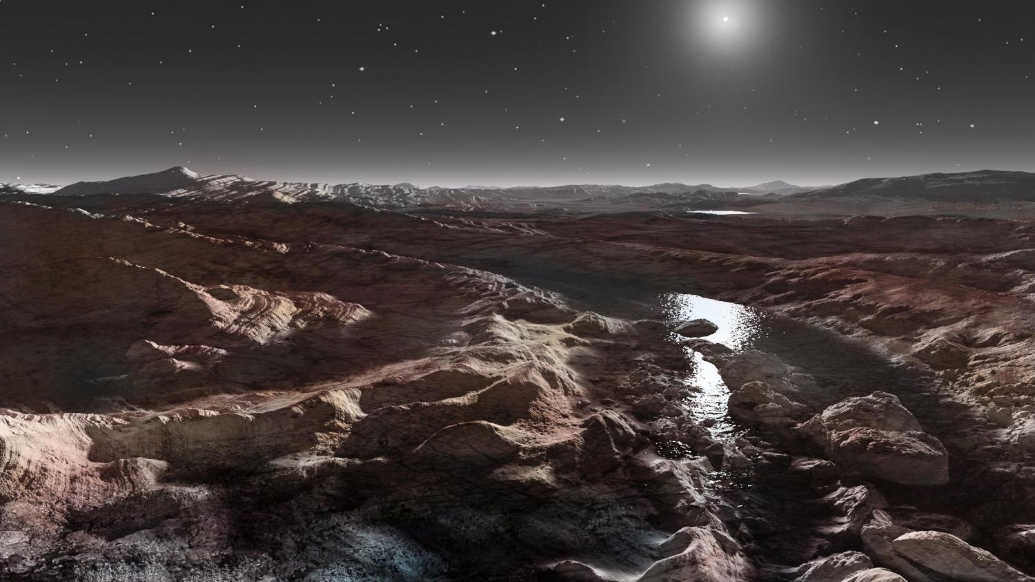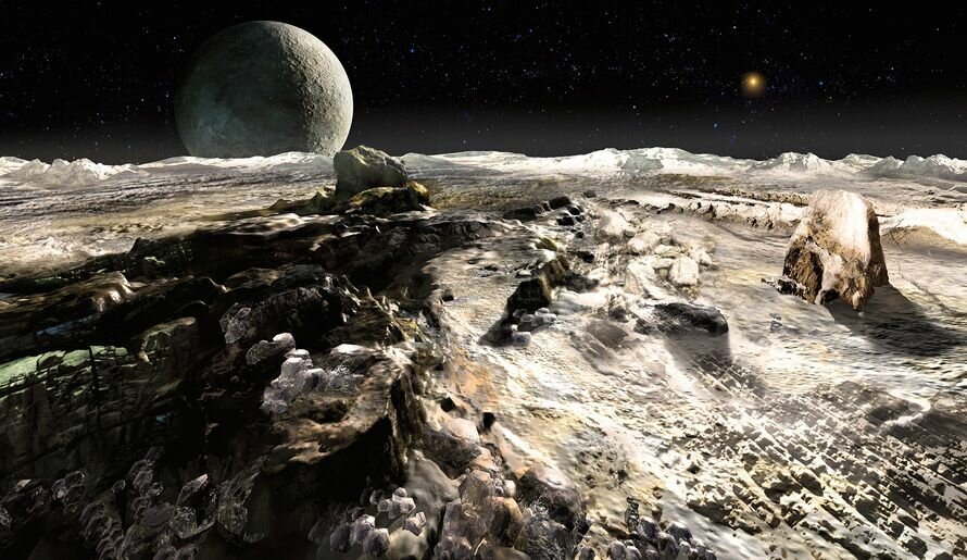 Плутон - это далекая планета, находящаяся в самой отдаленной части солнечной системы. Ее пейзаж поражает своей уникальностью и загадочностью. Поверхность Плутона покрыта ледяными плато, впечатляющими кратерами и горами из метана, а также различными формами рельефа, которые создают захватывающий вид издалека. Несмотря на свою маленькую размеры, планета способна вызывать ощущение величия и непостижимости природных явлений. Каждый уголок Плутона хранит тайны и загадки, которые до конца не раскрыты. Открывая перед нами свое удивительное ландшафтное разнообразие, Плутон позволяет нам проникнуться величием Вселенной и подумать о нашем месте в ее бескрайнем пространстве.