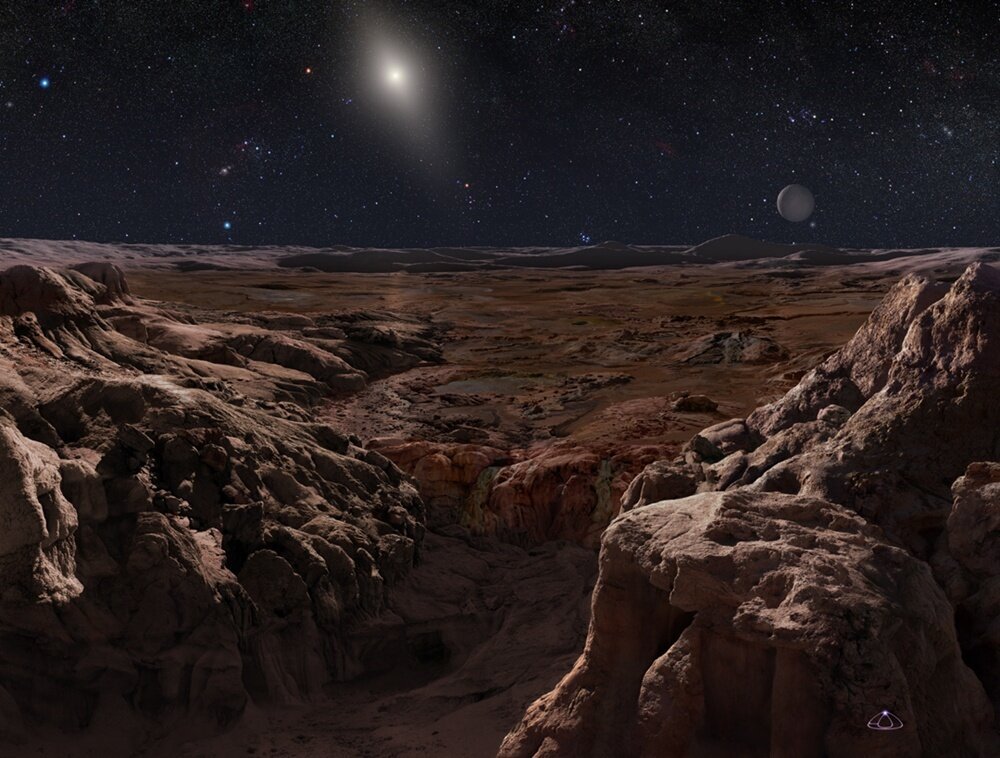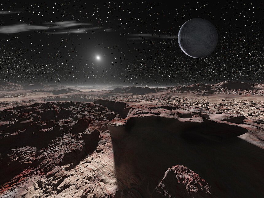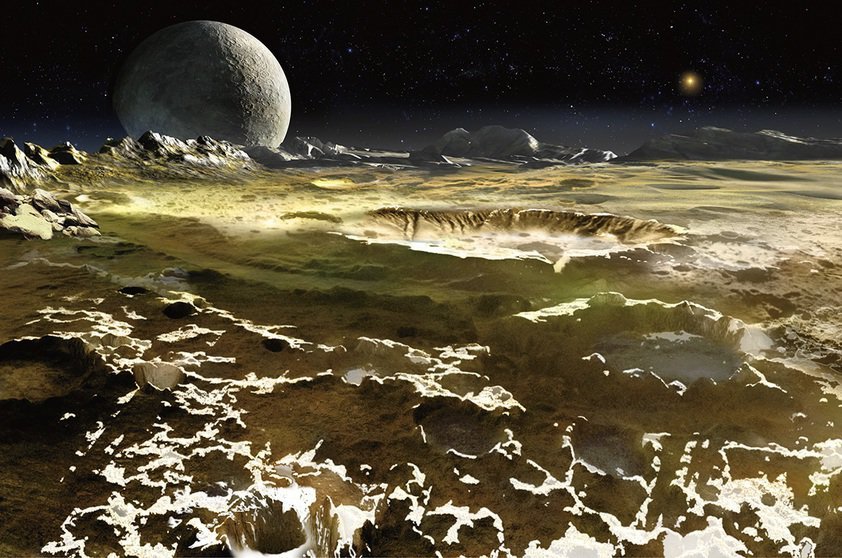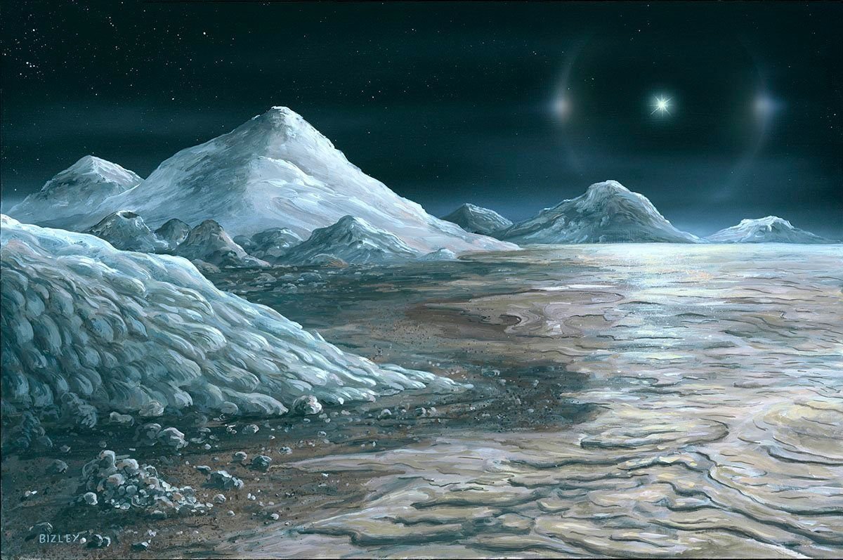 Плутон - это далекая планета, находящаяся в самой отдаленной части солнечной системы. Ее пейзаж поражает своей уникальностью и загадочностью. Поверхность Плутона покрыта ледяными плато, впечатляющими кратерами и горами из метана, а также различными формами рельефа, которые создают захватывающий вид издалека. Несмотря на свою маленькую размеры, планета способна вызывать ощущение величия и непостижимости природных явлений. Каждый уголок Плутона хранит тайны и загадки, которые до конца не раскрыты. Открывая перед нами свое удивительное ландшафтное разнообразие, Плутон позволяет нам проникнуться величием Вселенной и подумать о нашем месте в ее бескрайнем пространстве.