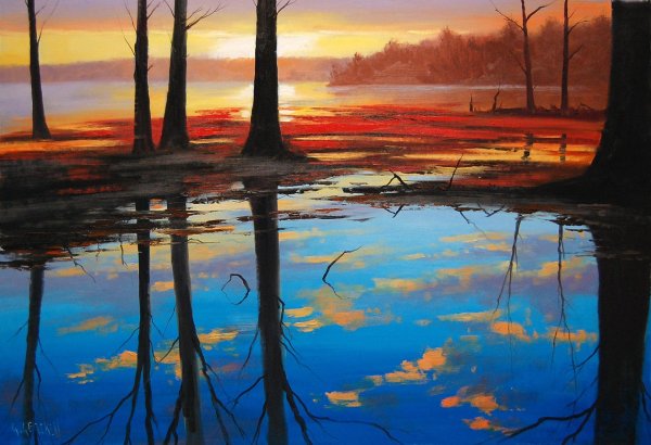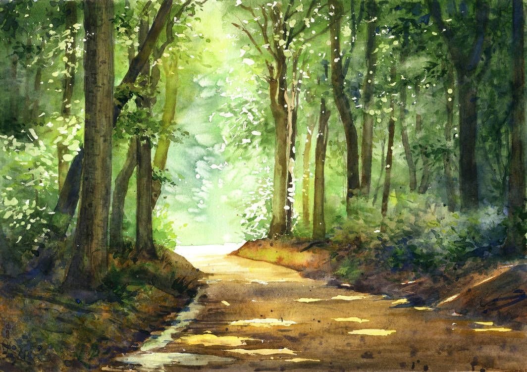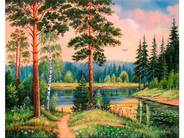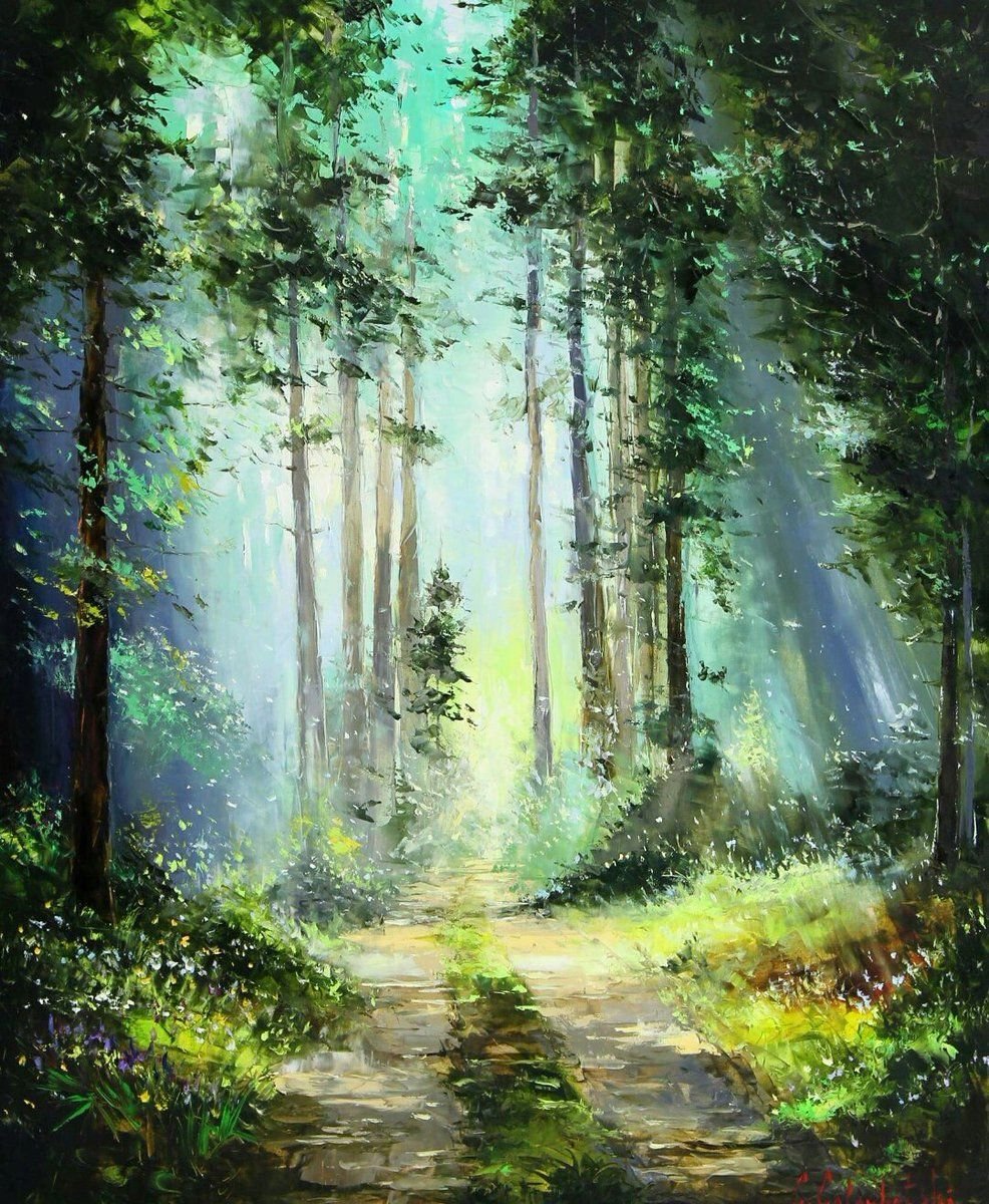 Лесной пейзаж, раскрашенный яркими и насыщенными красками, привлекает внимание своей изумительной красотой и гармонией. Листья деревьев переливаются зелеными, желтыми, оранжевыми и красными оттенками, создавая неповторимую палитру осени. Просвечивающие солнечные лучи проникают сквозь листву и создают игривые тени на земле. Вдалеке можно увидеть величественные деревья, простирающиеся к небу и обрамляющие мирное уединение этого места. Атмосфера лесного пейзажа наполняет сердце спокойствием и приглашает забыть о повседневных заботах, окунуться в природную гармонию и насладиться великолепием мира природы.
