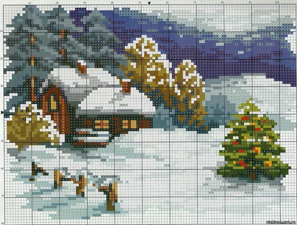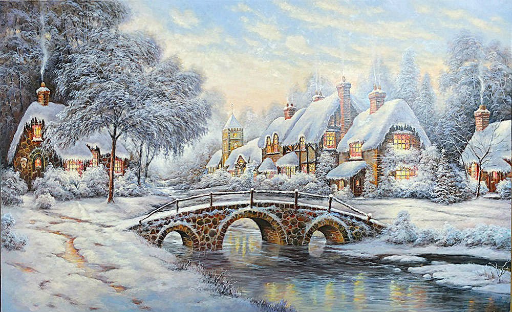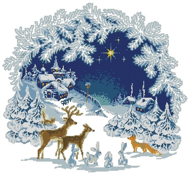 Волшебный новогодний пейзаж превращается в миниатюру, захватывая сердца своим очарованием. Мягкий снег покрывает землю, создавая иллюзию нежности и спокойствия. На заднем плане виднеются величественные холмы и горы, украшенные белыми сугробами. Вдалеке плавно течет река, которая словно отражает подсветку огней гирлянд на деревьях. В центре картинки расположена зимняя ель, нарядившаяся в яркие игрушки и мерцающие огоньки. Ветви дерева легко колышутся под дыханием ветра, придающего этому месту живую энергию. Волшебная атмосфера наполняет воздух, создавая чувство торжества и ожидания чуда. Эта миниатюра переносит нас в мир сказки, где время останавливается, чтобы каждый мог в полной мере насладиться красотой и волшебством новогоднего праздника.