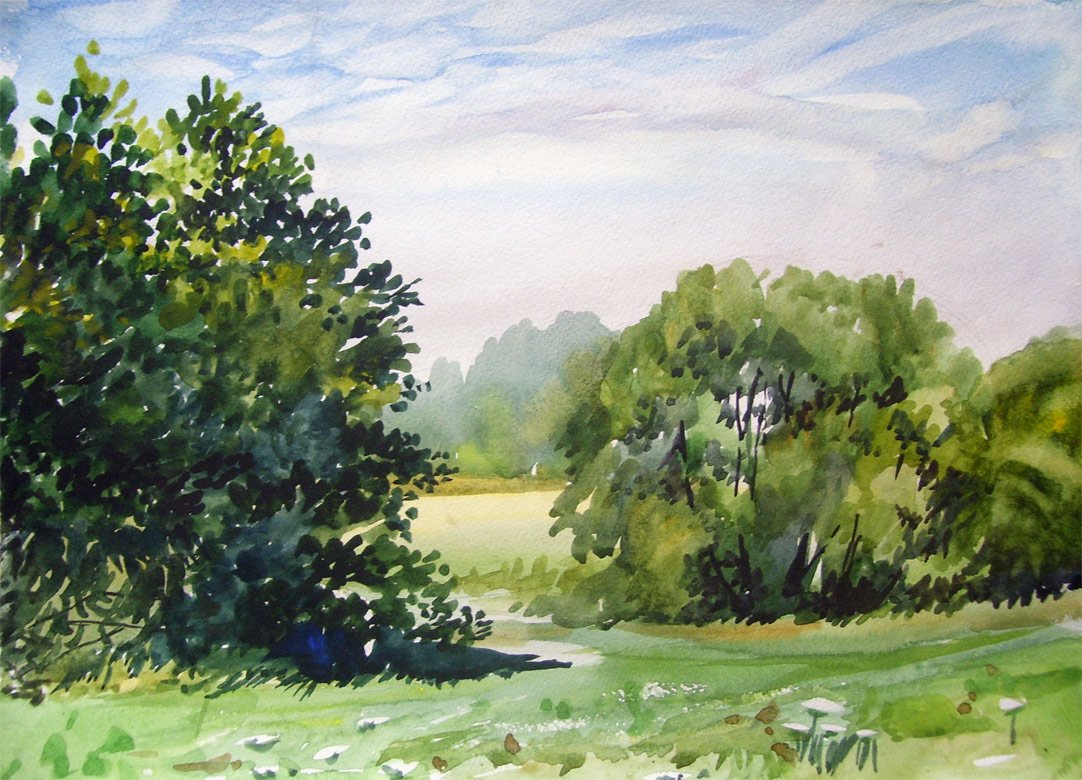 Летний пейзаж акварелью