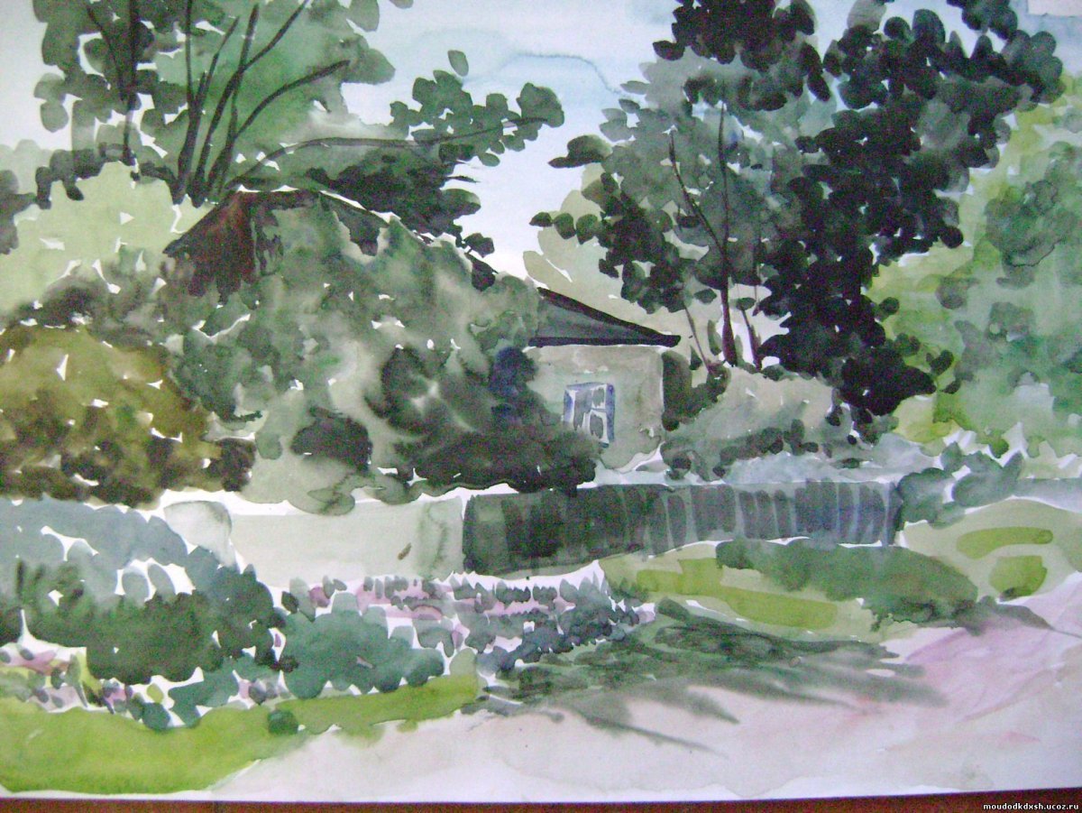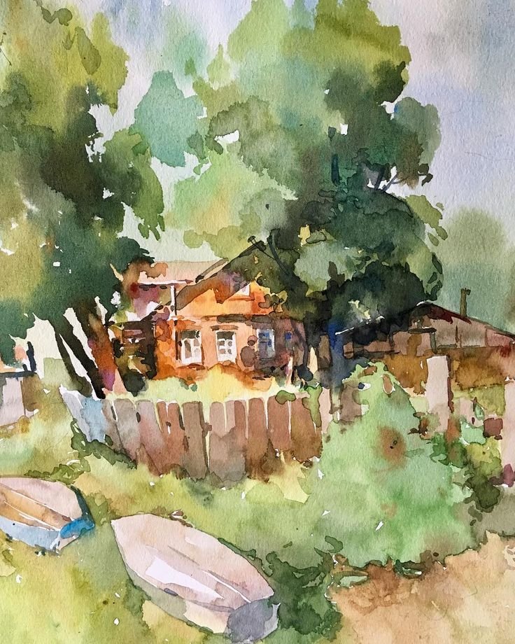 Пленер Этюд акварелью деревня