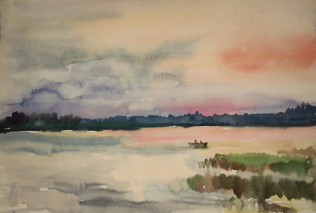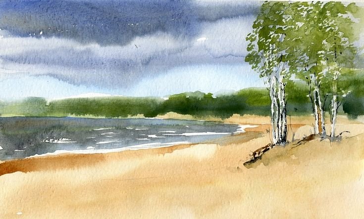 Этюд озеро акварелью