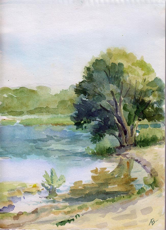 Пленэр акварелью река