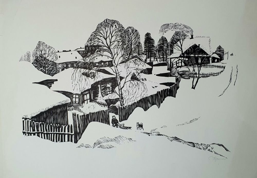 Гравюра. Линогравюра. Александр Шевченко. «Сосны и дюны»