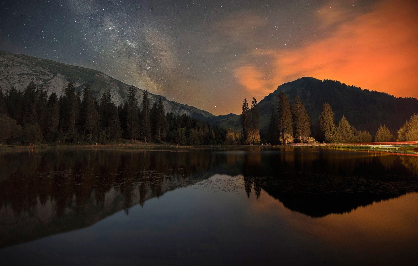 Горы озеро ночь