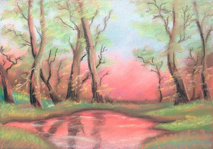 Пейзаж, изображенный пастелью, приносит восхищение своей простотой и нежностью. Он переносит нас в мир спокойствия и гармонии, где цвета окутывают нас мягкими оттенками и создают атмосферу тепла и умиротворения. В таком пейзаже можно увидеть легкий туман, парящий над полями или озером, деревья с нежными листвой и пастельными тонами, а также облака, напоминающие хлопья розового или голубого цвета. Этот простой пейзаж пастелью позволяет нам насладиться красотой окружающего мира и забыть о повседневных заботах и проблемах, погрузившись в мечтательное состояние и полное расслабление.