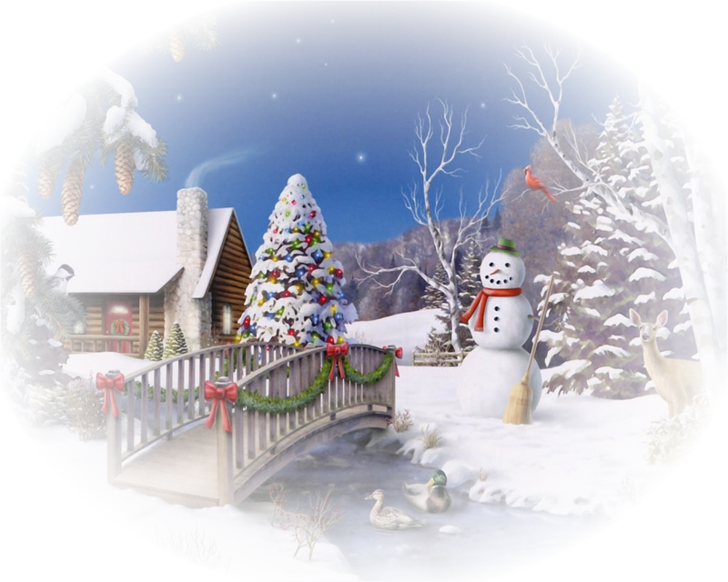 Новогодние пейзажи на прозрачном фоне