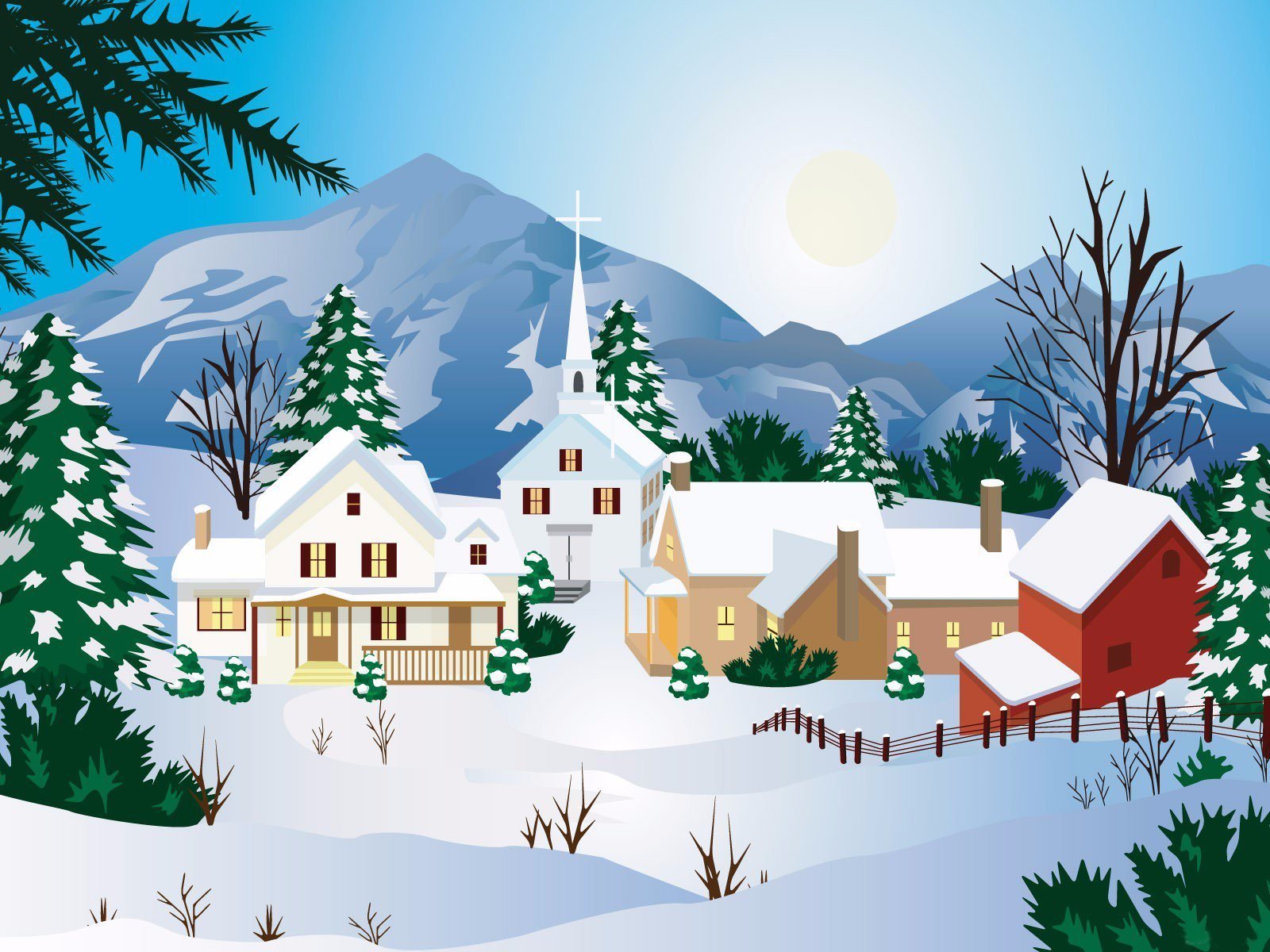 Рождественский пейзаж клипарт