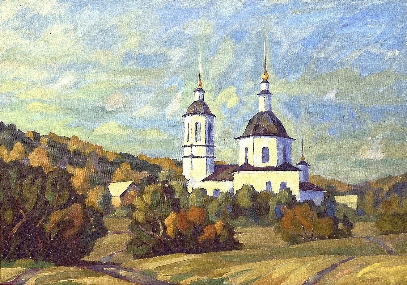 Пейзаж с церквушкой, выполненный в технике гуашь, представляет собой очаровательное и привлекательное произведение искусства. Главным элементом этого пейзажа является небольшая церковь, которая стоит на фоне красивой природы. Благодаря мягким и насыщенным оттенкам гуаши, образовавшимся благодаря смешению красок с водой, пейзаж приобретает особую атмосферу и создает ощущение спокойствия и гармонии. Детали церкви, такие как купола и колокольня, выделяются на фоне зеленых полей или городского пейзажа, придавая картине уникальность и узнаваемость. Пейзаж с церквушкой гуашью является прекрасным выбором для декорирования интерьера, добавляя ему нотку истории и эстетического очарования.