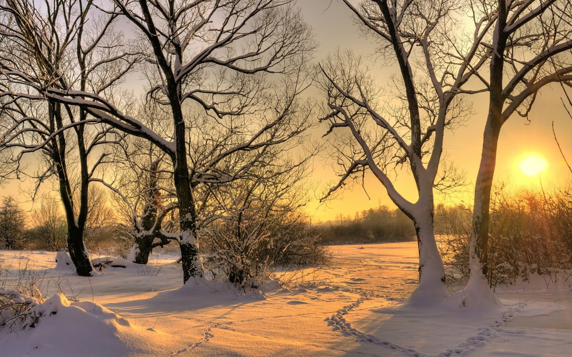 Зимний пейзаж с солнцем