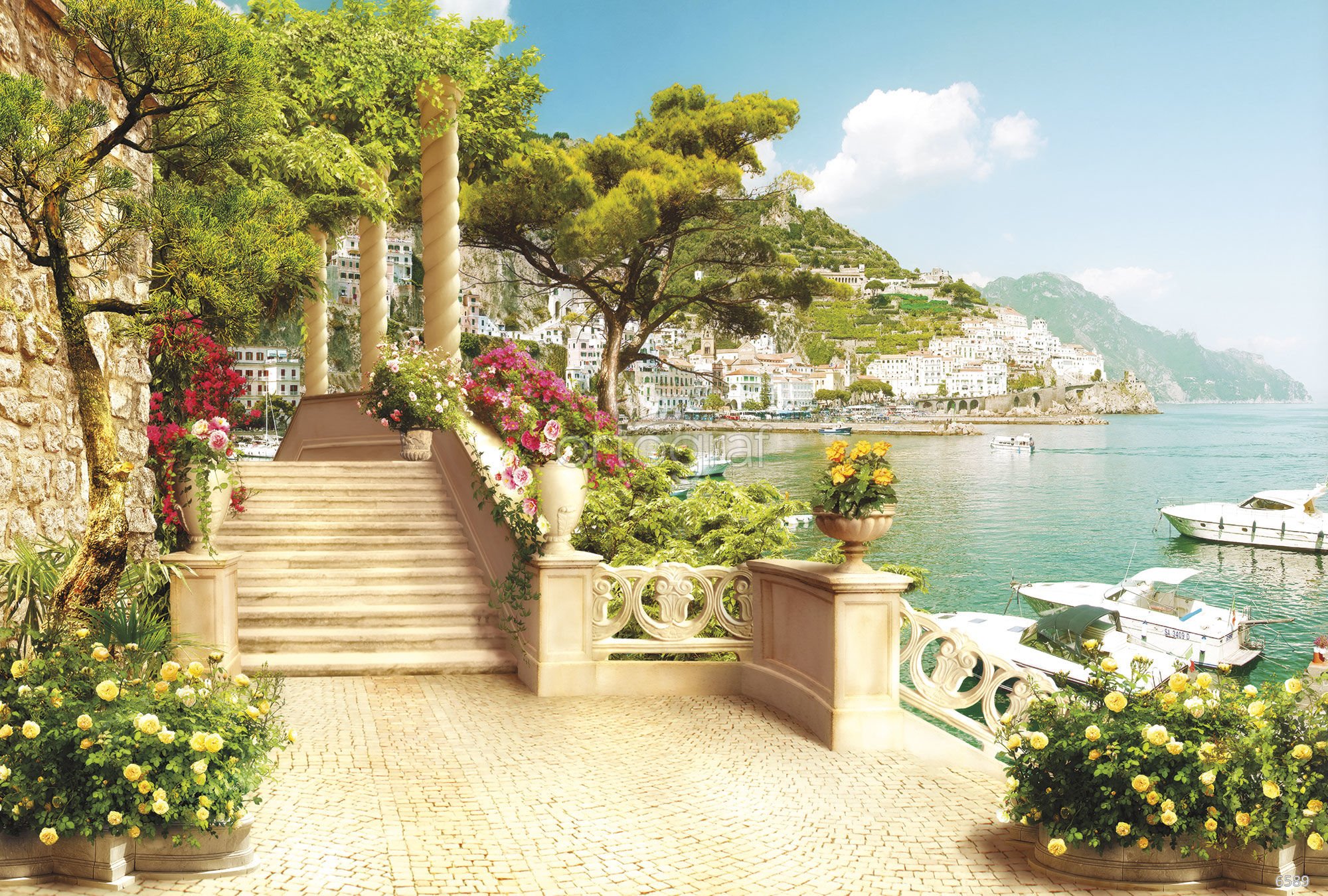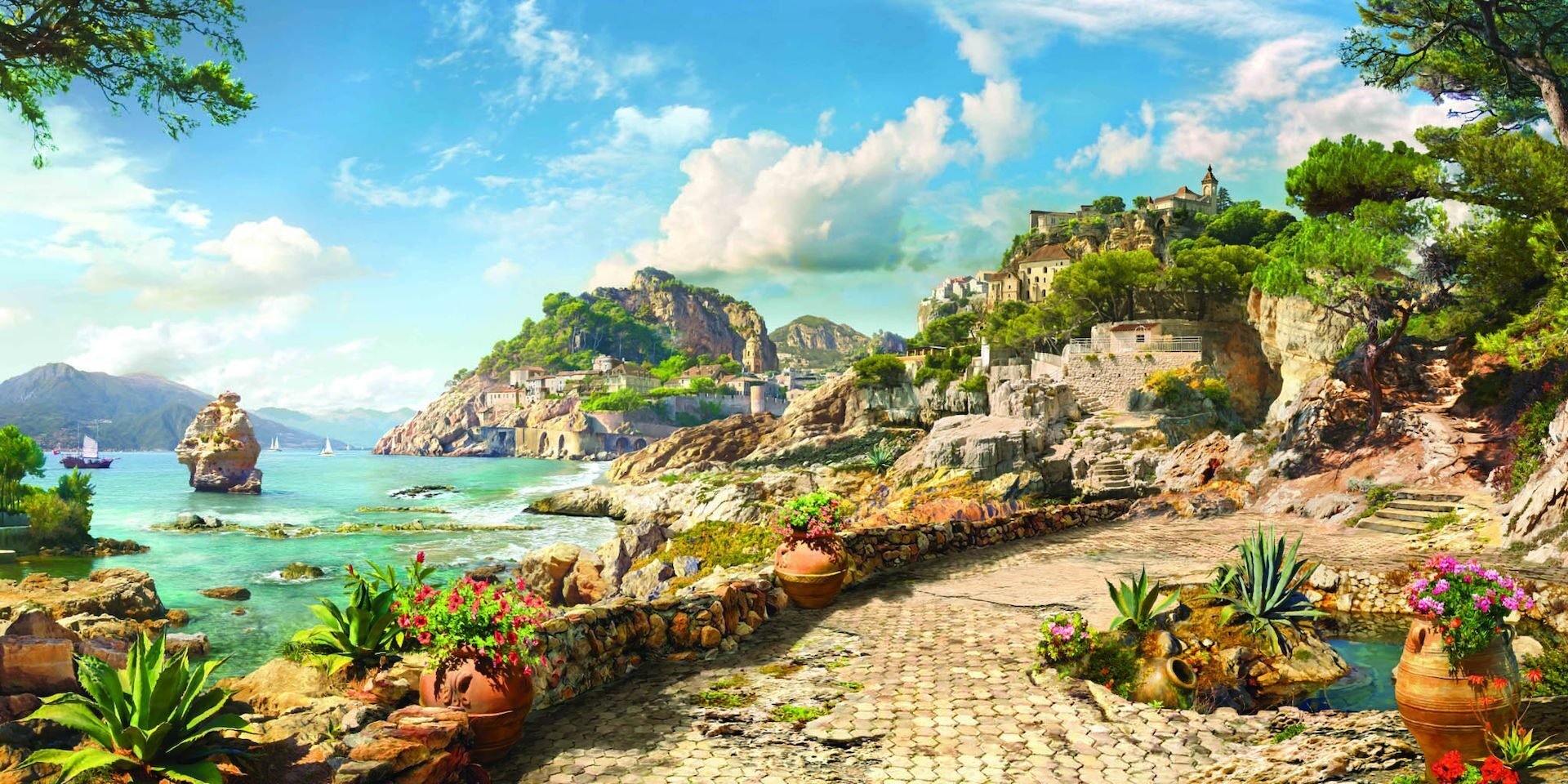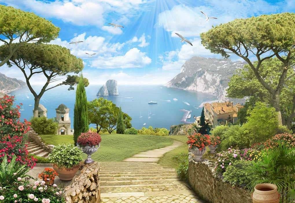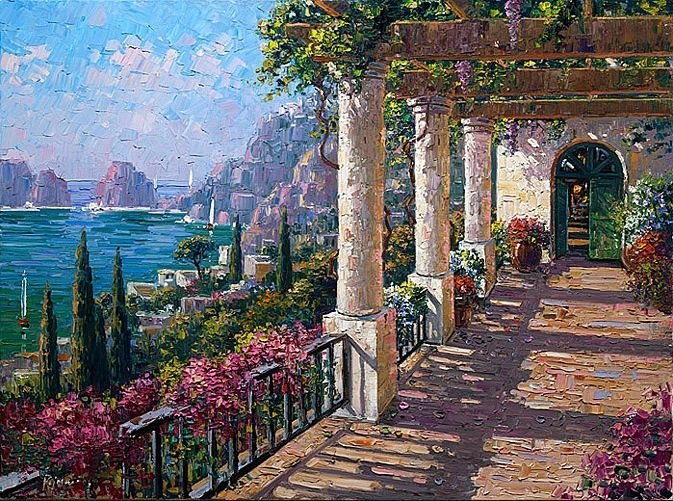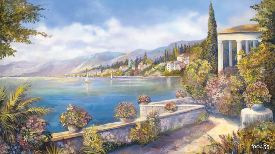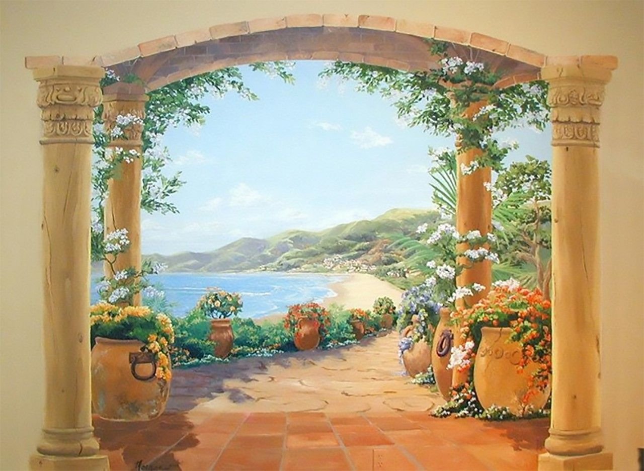 Средиземноморский пейзаж фрески витражи