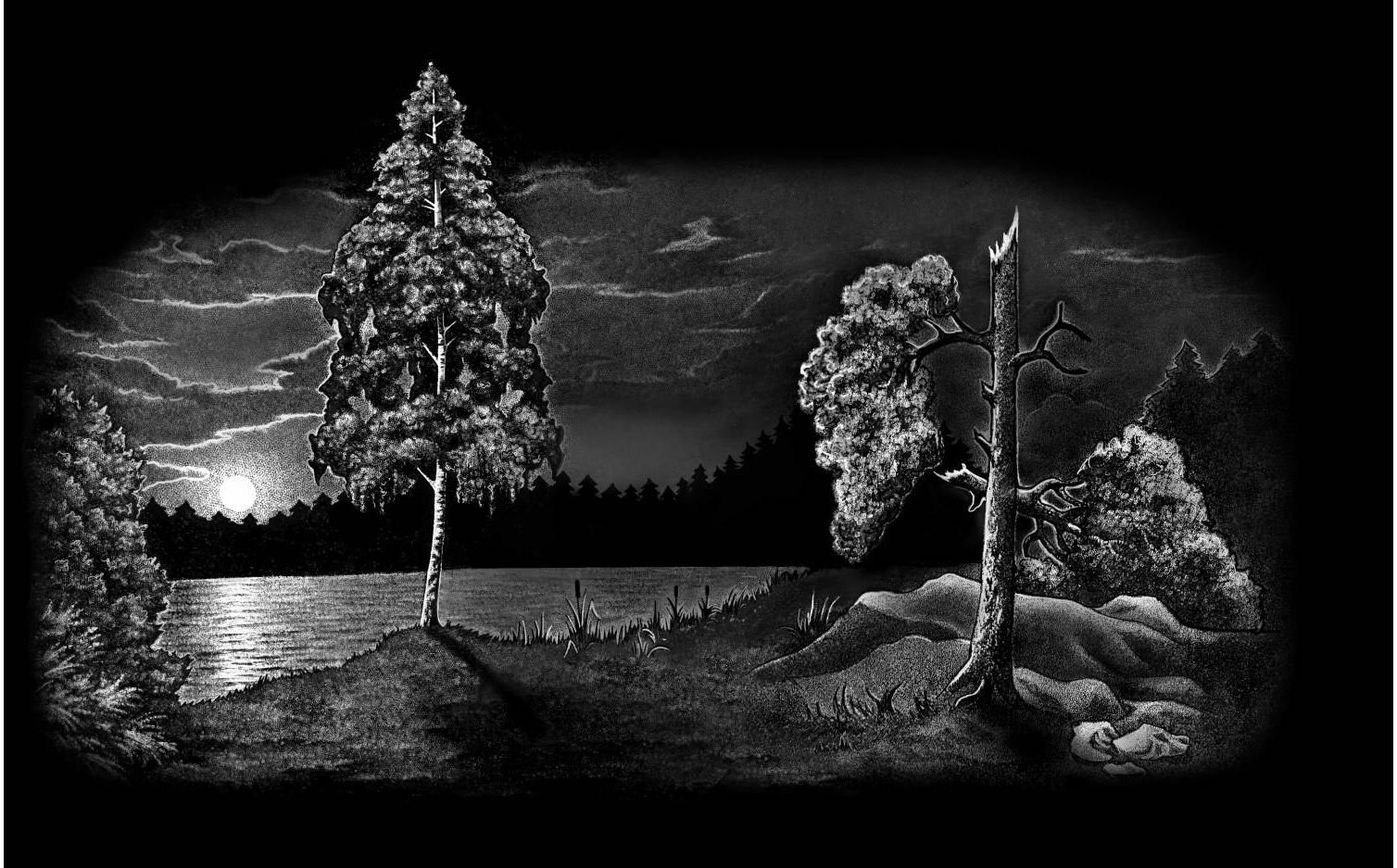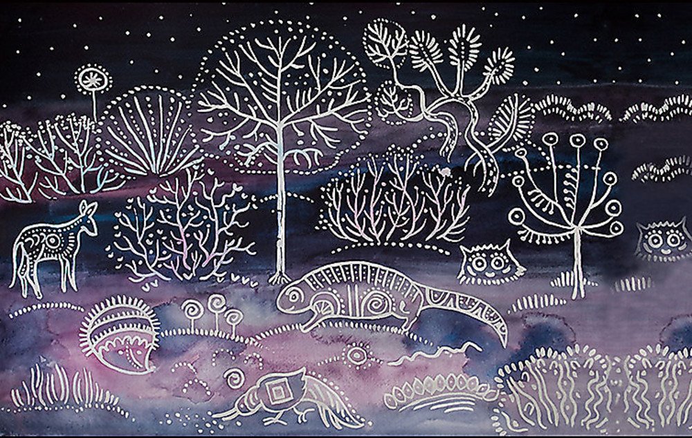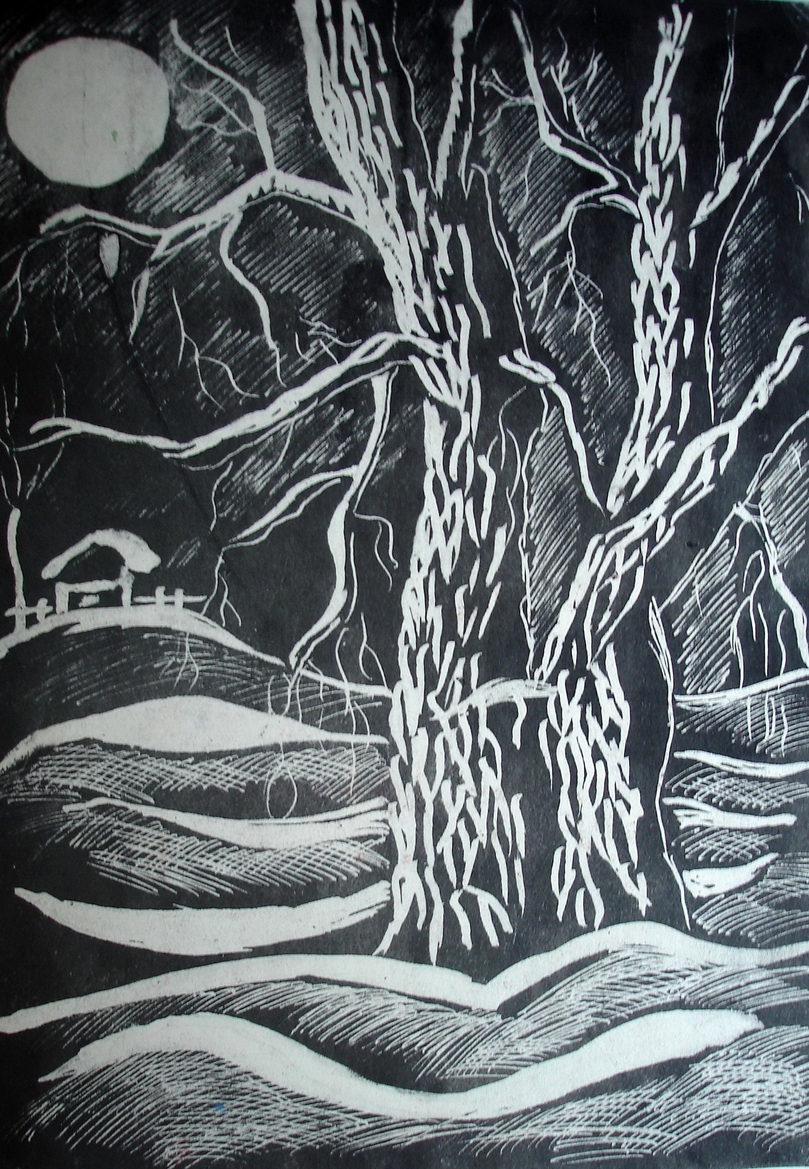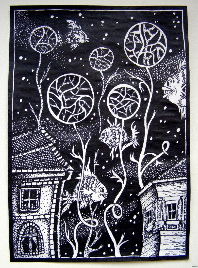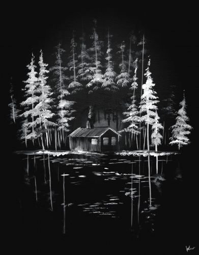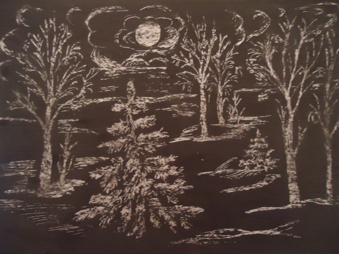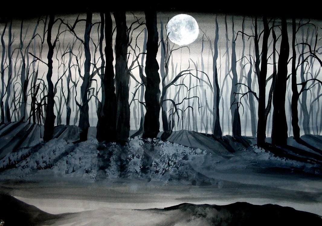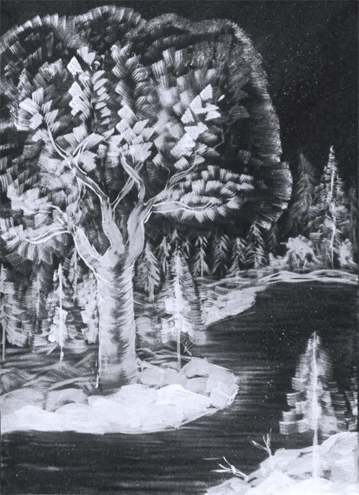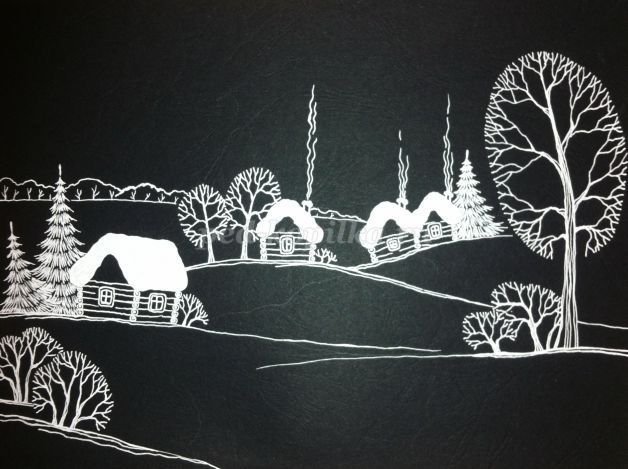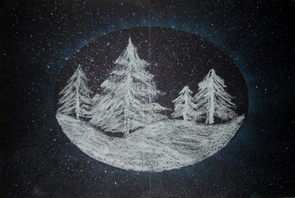 Пейзаж на черном фоне белой гуашью (50 фото)
